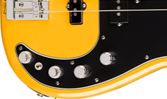 The Player II Modified Active Precision Bass is a classic bass with the modern player in mind. Everything about the neck is designed for fast and fluid playability, from the Modern βCβ-profile with silky satin urethane finish on the back to the comfy 9.5β-radius slab rosewood or 1-piece maple fingerboard with smooth rolled edges and 20 medium jumbo frets. The alder body provides classic Fender punch and is available in a variety of exciting new finishes. The Player II Modified Precision Bass Neck and Noiseless Jazz Bass Bridge Pickups deliver classic Fender thump and growl while eliminating unwanted noise and the all-new active preamp with passive tone control and improved EQ section gives players the perfect tool to dial in their favorite tones. The 4-saddle HiMass bridge, tapered-shaft tuners and TUSQ nut all combine to keep tuning incredibly stable for even the most demanding performances.