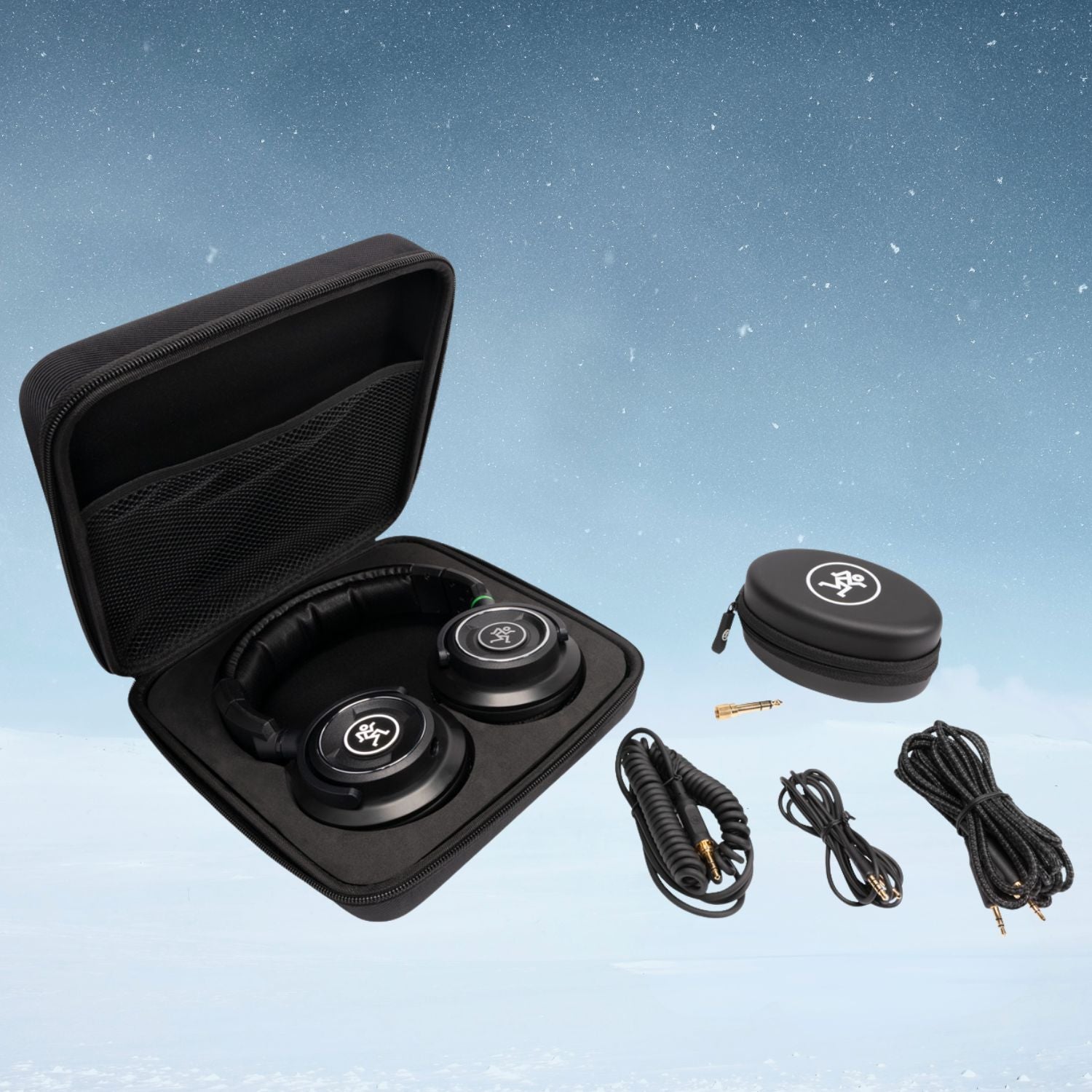 Features: High-Performance Monitoring Headphones Experience the signature Mackie studio sound in headphones that offer a balanced, full sound High-headroom, reference-quality 50mm transducers provide an accurate reproduction of your mix and your music Precision-tuned enclosure delivers punchy bass and enhanced high frequency detail for an ultra-wide soundstage Professional Design Premium real leather adjustable headband and conforming ear pads provide an ergonomic fit for hours of comfort while ensuring optimal low-end and sound isolation Rugged design is built to last and meet the demands of professionals in the studio or on location Perfect for mixing, studio recording, critical listening, and personal listening Premium cables with locking bayonet connectors 9.8 ft.
