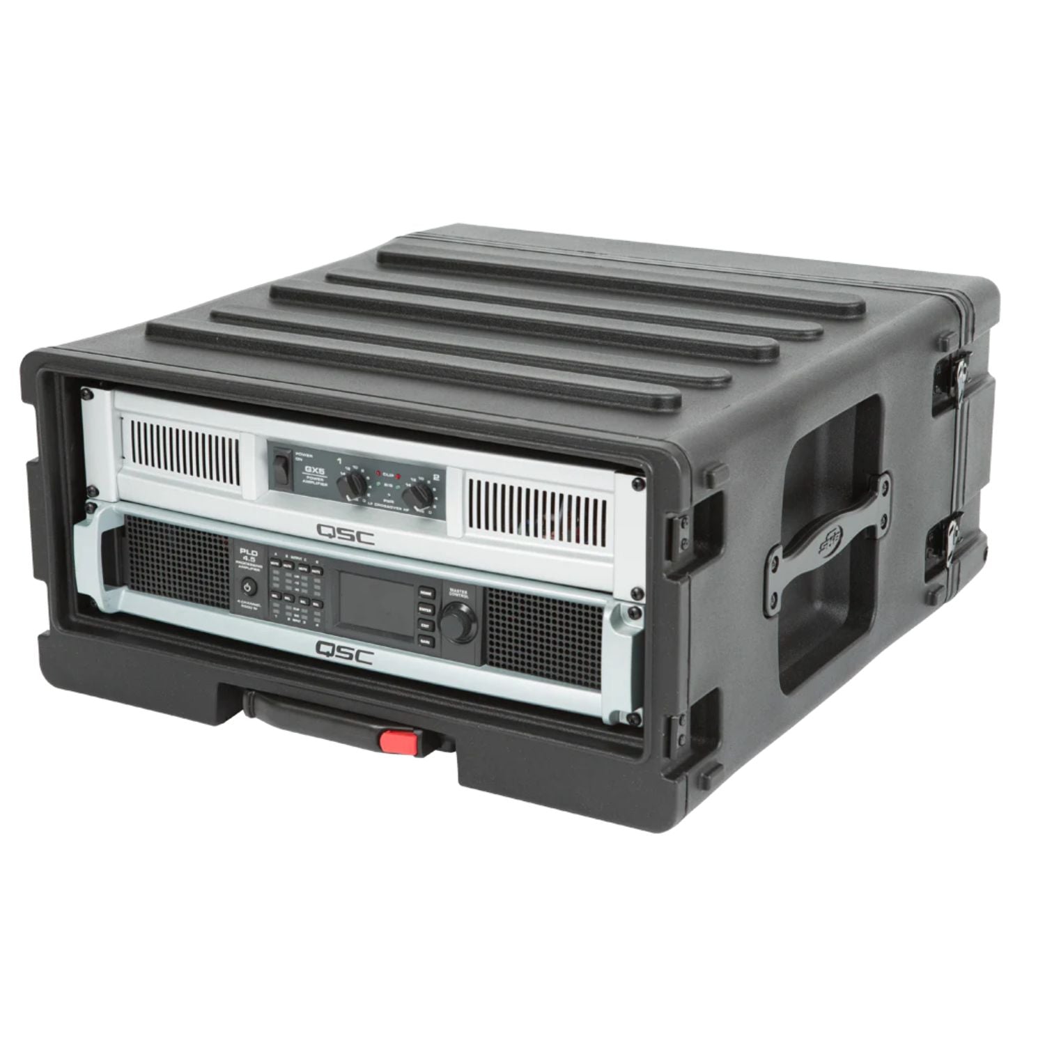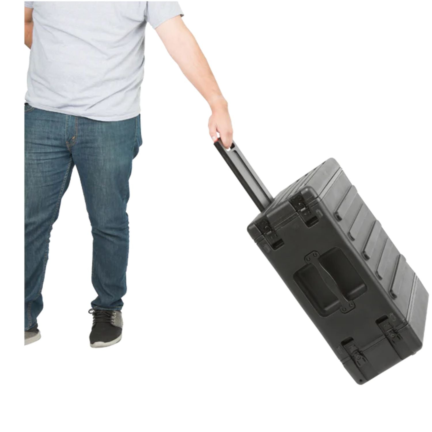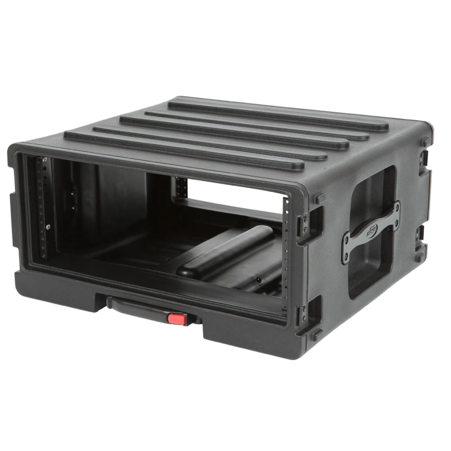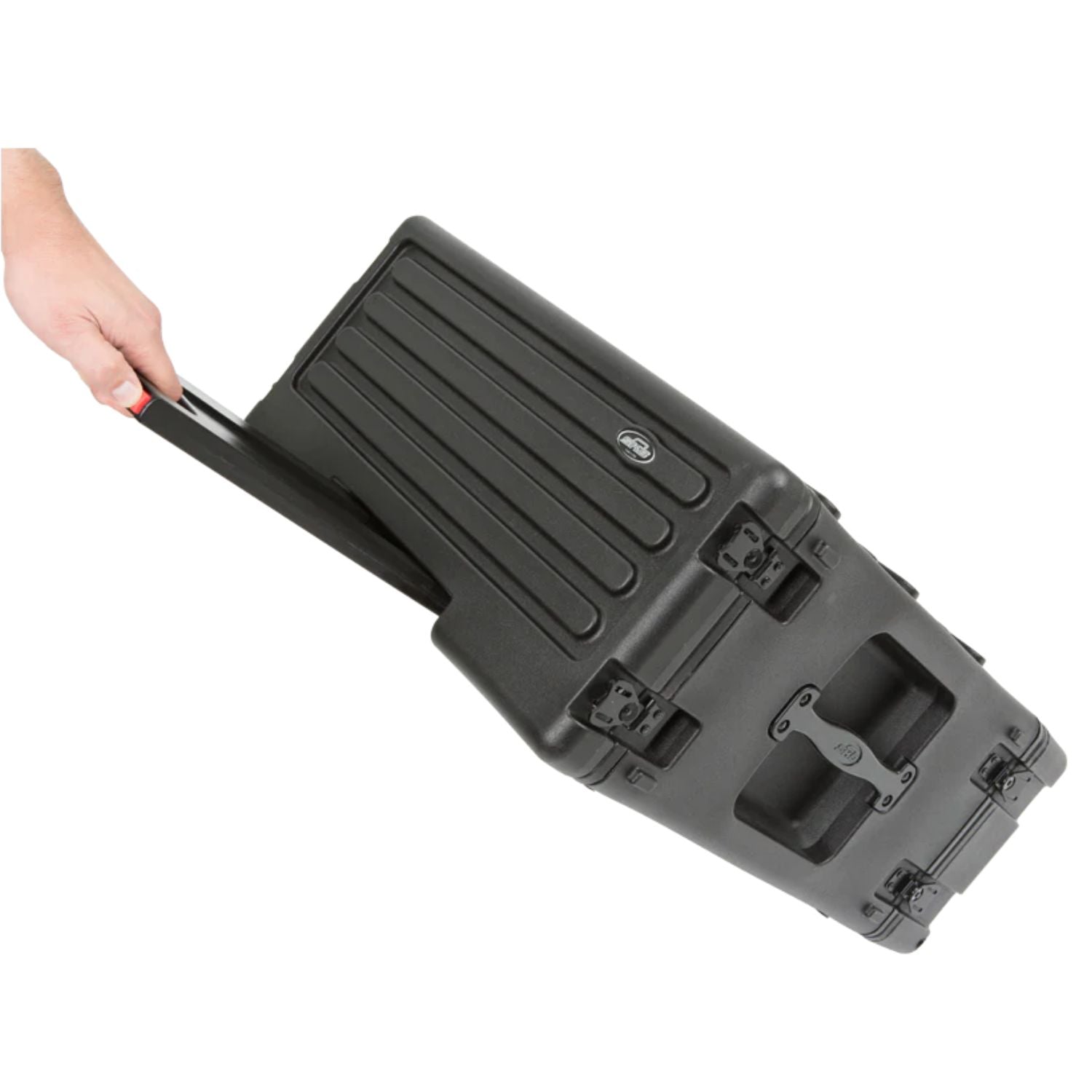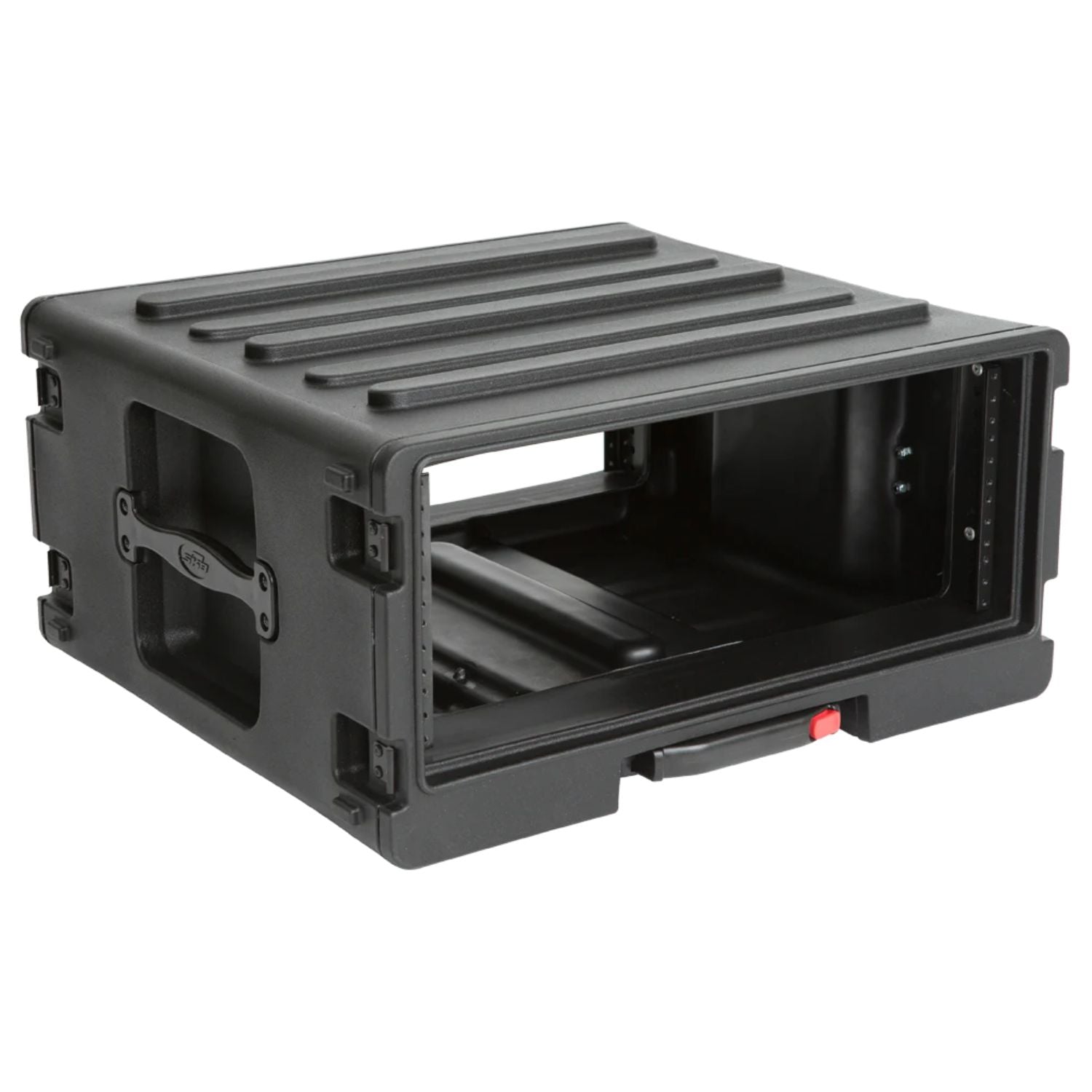 Available in 4U, 6U, and 8U sizes, SKB Roto Rolling Racks are roto-molded of Polyethylene (LLDPE) for extra strength and durability. These racks incorporate our one-touch pull handle and back lid mounted wheels to improve ease of transport and help eliminate heavy lifting and carrying.