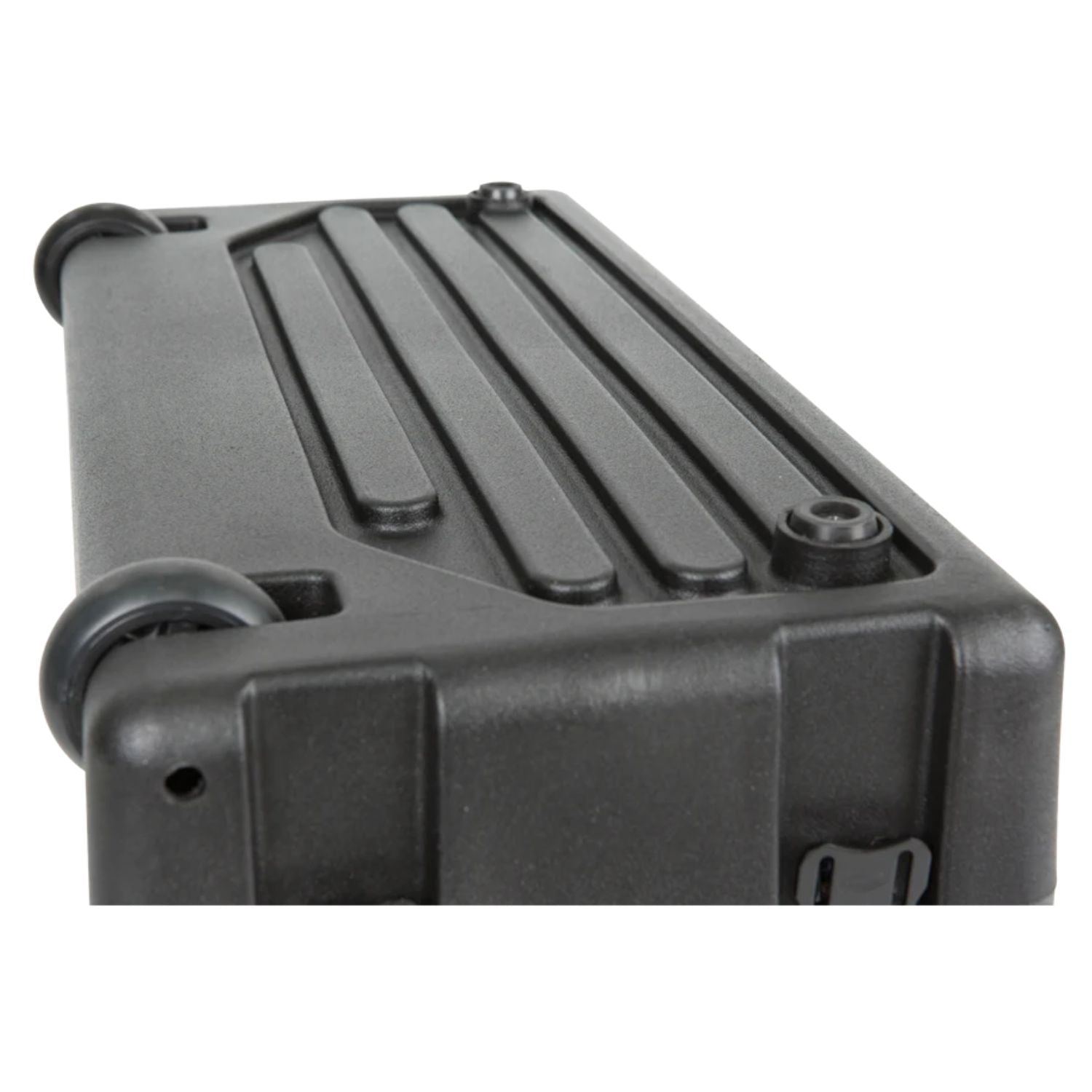 The exteriors feature SKB's recognizable bar design that signifies the rack unit size on the front and rear lids. Molded bars on top and bottom also provide interlocking capabilities allowing you to easily and securely stack them with SKB's Shallow Racks and Standard Roto Racks, making transport even more convenient and secure. Lids include rubber gasket seals to keep water out. Other standard features include front and rear steel threaded rails and rack screws (10-32 thread), recessed steel Mil-Spec twist latches, flush carry handles, and non-slip rubber feet. All Roto Rolling Racks are 17.6" deep from front rail to rear rail.