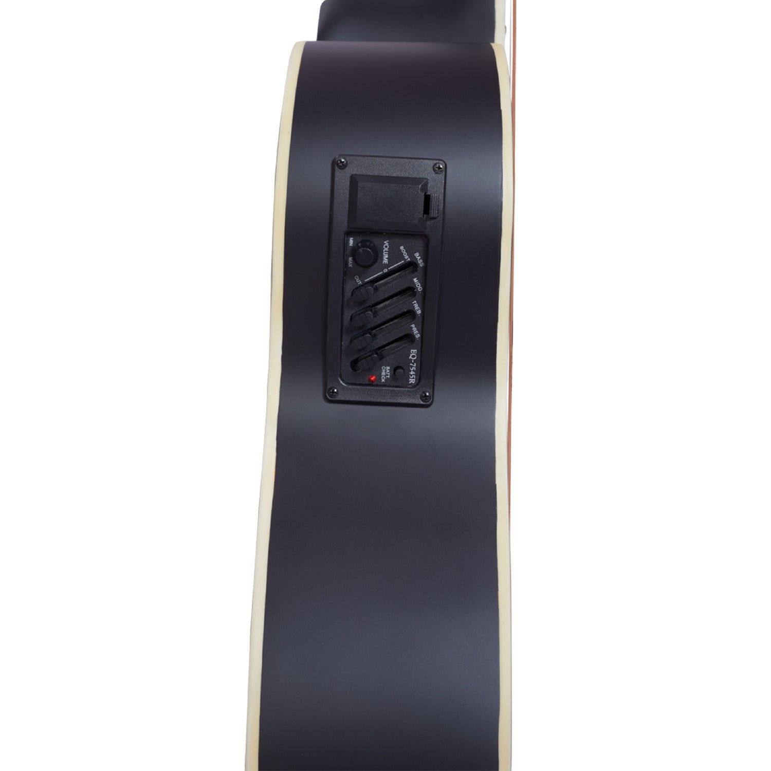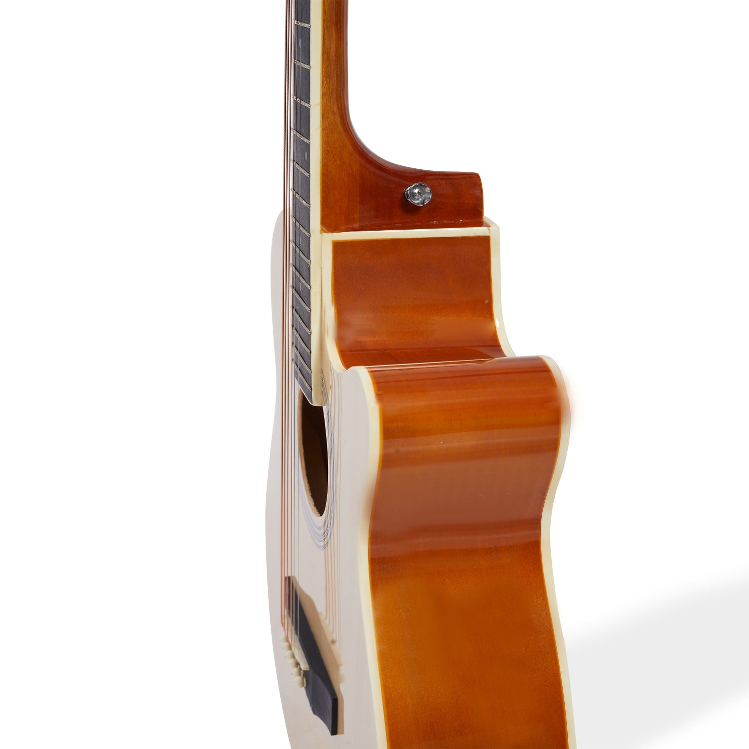 The Vault EA20 Acoustic Guitar Kit is a complete package tailored for beginners and casual players who seek quality, comfort, and convenience in one affordable bundle. This 40-inch cutaway steel-string acoustic guitar is designed to deliver an exceptional playing experience with rich, full-bodied sound thanks to its basswood body. The cutaway design ensures easy access to higher frets, making it perfect for solos and advanced techniques.