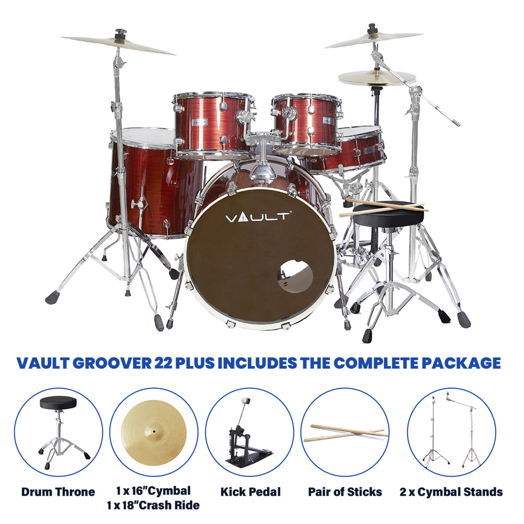The Vault Groover Plus and Vault Groover acoustic drumkits offer exceptional quality at unbeatable prices. With their durable poplar shells, versatile toms, and high-quality cymbals, both kits provide the ideal foundation for drummers of any level. Whether you're just starting with the Vault Groover or looking to elevate your performance with the advanced features of the Vault Groover Plus, both options promise outstanding sound and reliability.