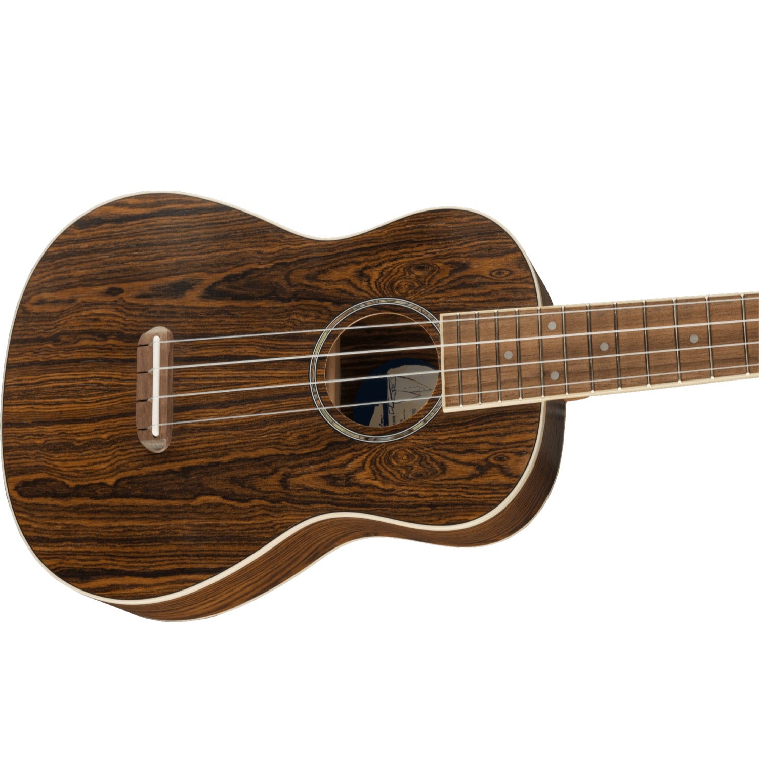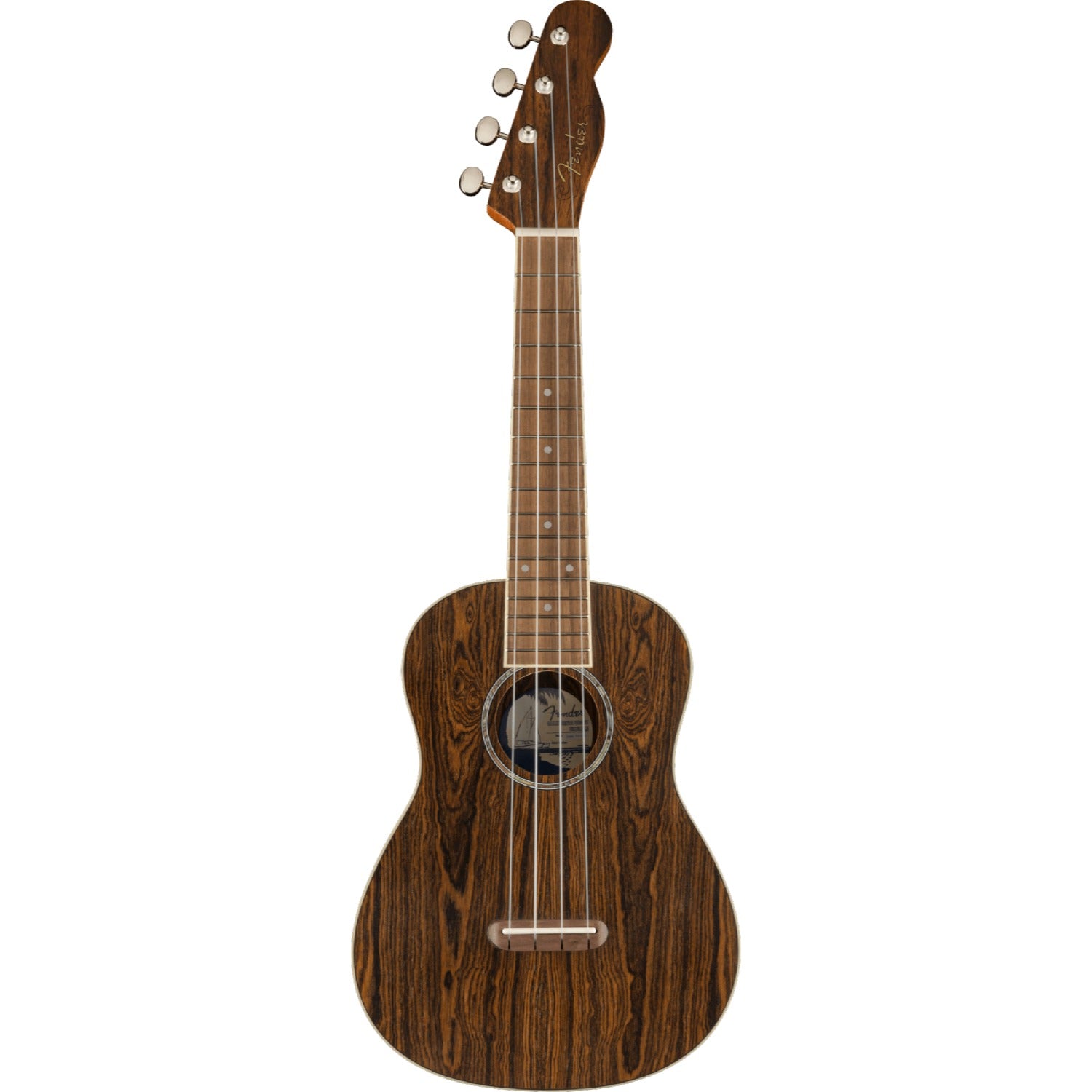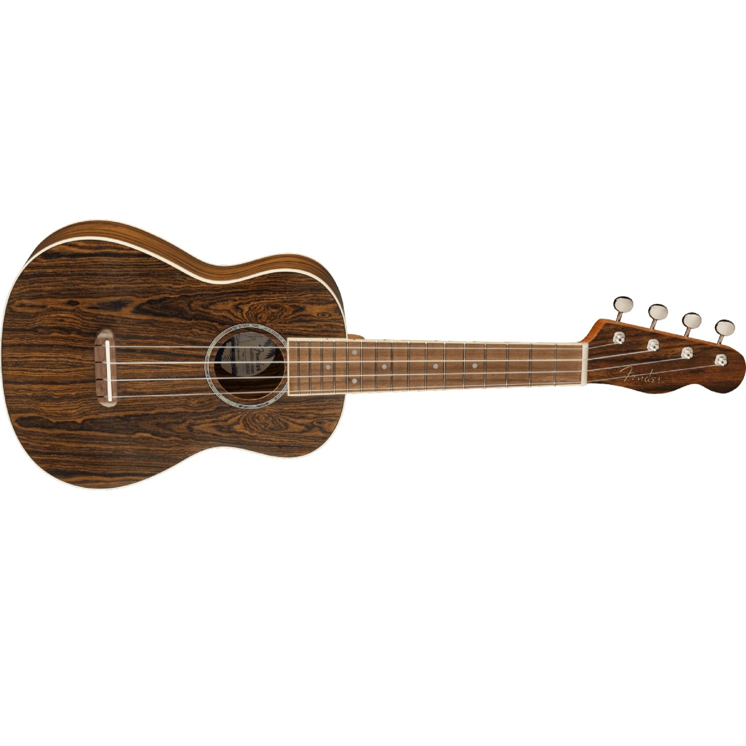 Fender Zuma Exotic Concert Ukulele Overview: Like the famous Southern California beach it's named for, the Zuma Exotic Concert Ukulele inspires creativity. Built with a choice of bocote or spalted maple top, back, and sides, the Zuma Exotic has a striking and elegant appearance with a warm, balanced tone to match. A nato neck, walnut fingerboard, abalone rosette, and an open-pore satin finish compliment the instrument's earthy look and feel.