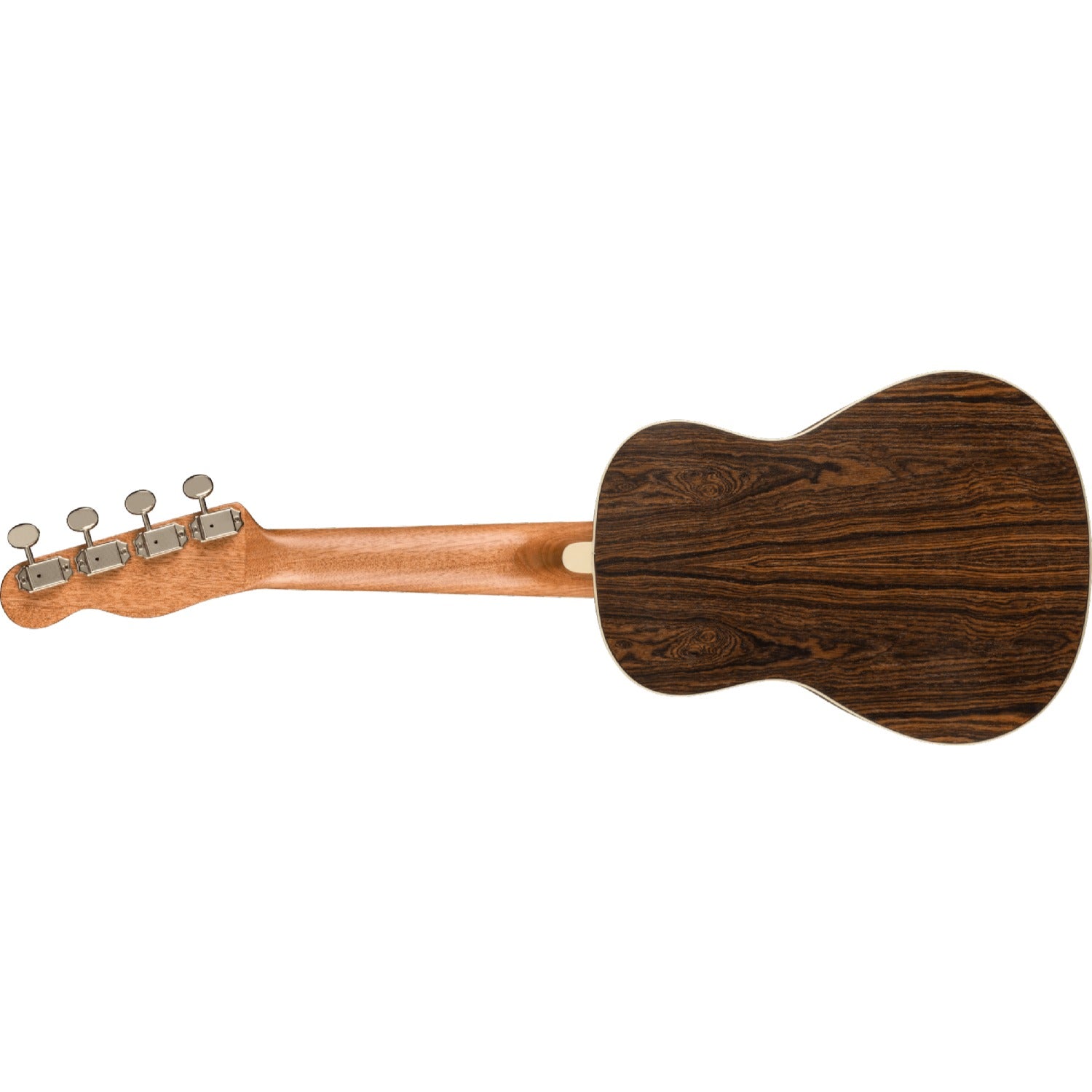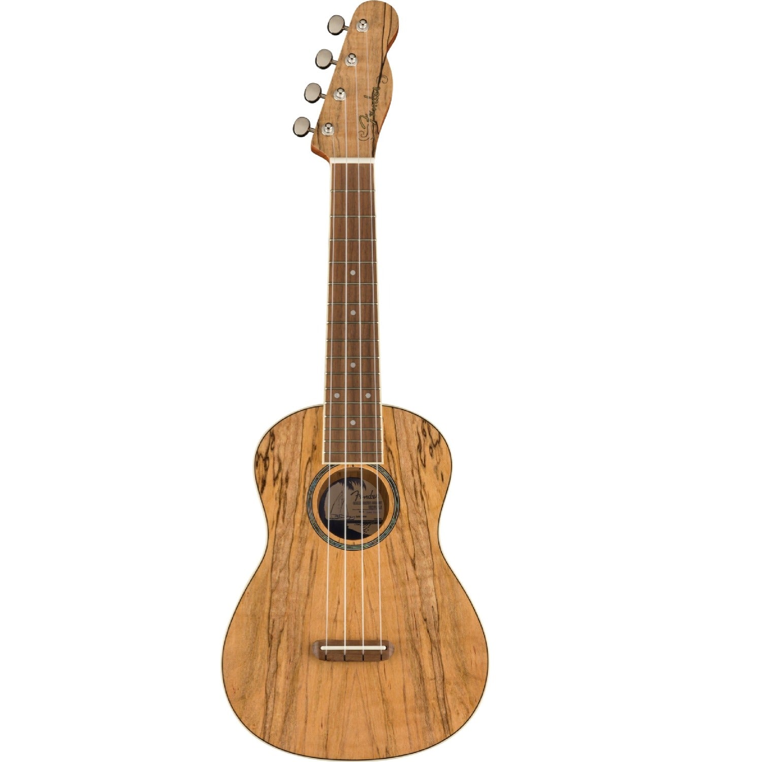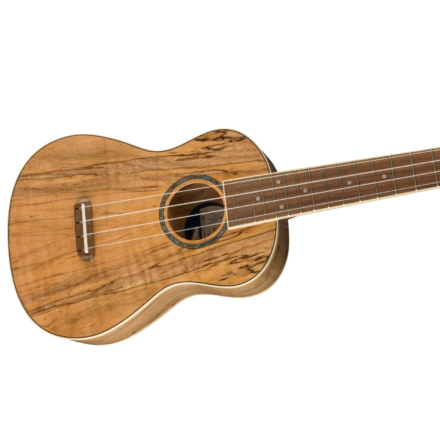 Fender Zuma Exotic Concert Ukulele Overview: Like the famous Southern California beach it's named for, the Zuma Exotic Concert Ukulele inspires creativity. Built with a choice of bocote or spalted maple top, back, and sides, the Zuma Exotic has a striking and elegant appearance with a warm, balanced tone to match. A nato neck, walnut fingerboard, abalone rosette, and an open-pore satin finish compliment the instrument's earthy look and feel.