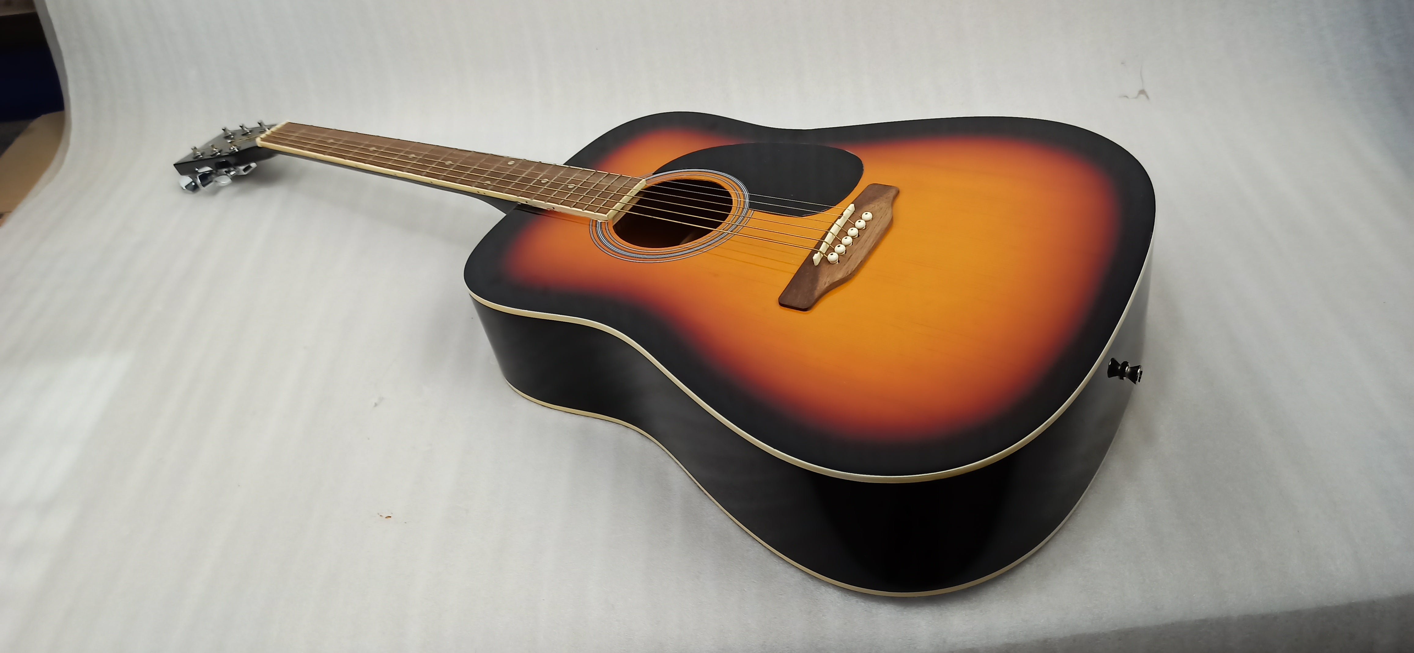 Minor scratches near the guitar binding, guitar bridge fixed marks visible near the neck joint.