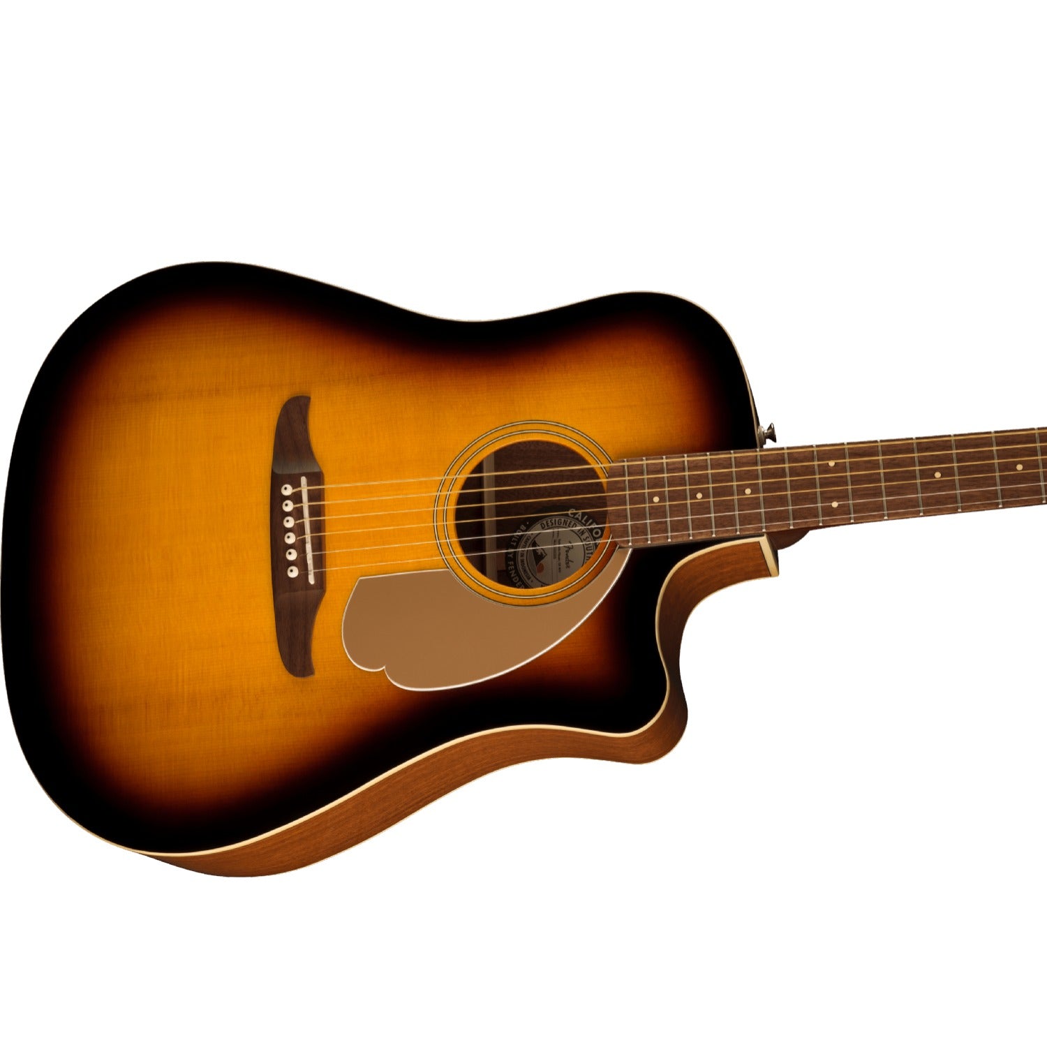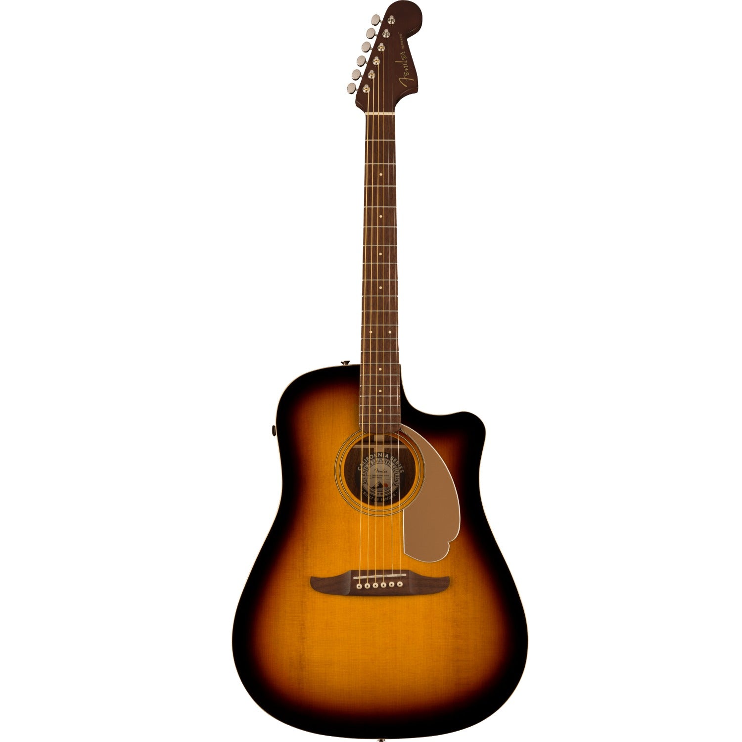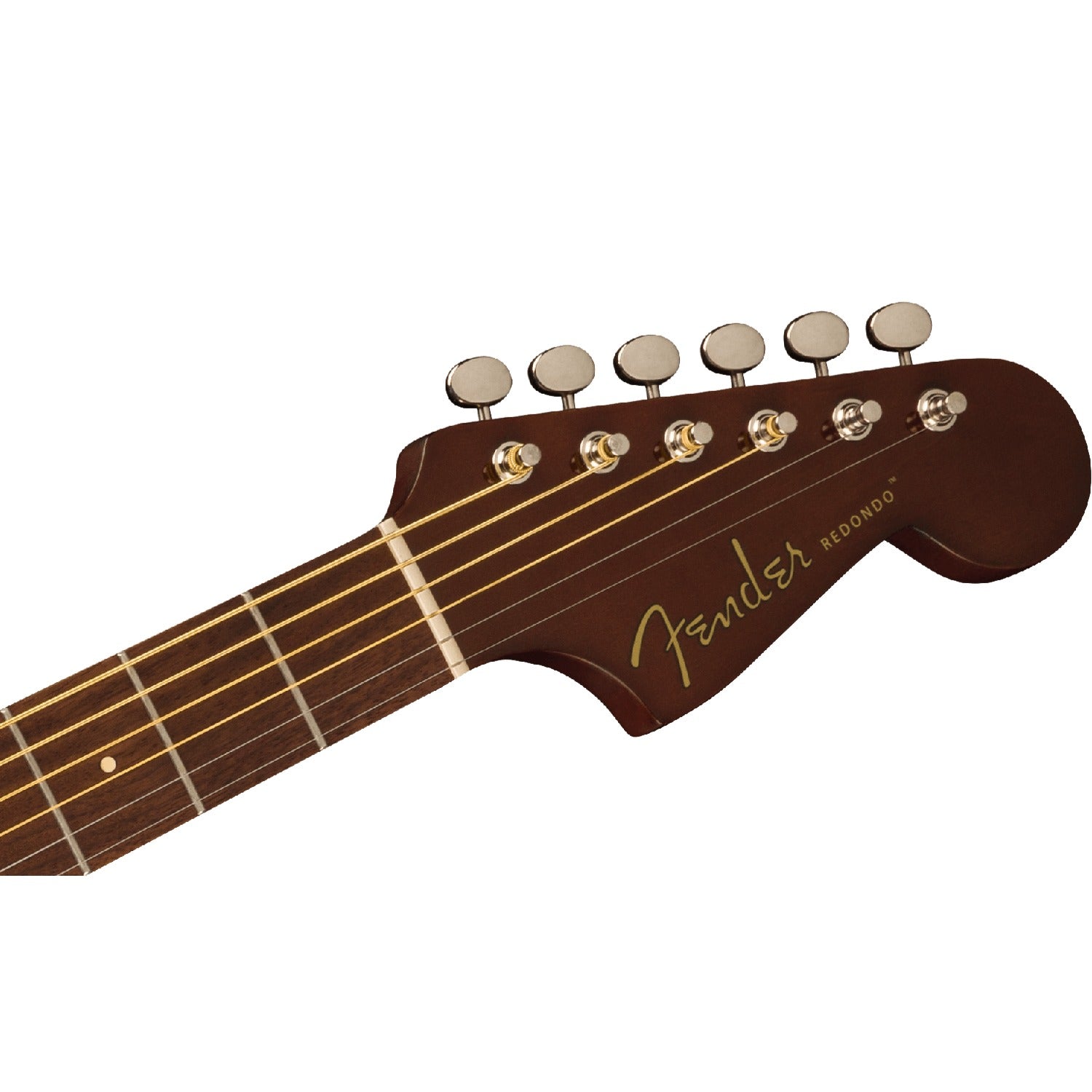 Fender Redondo Player Acoustic Guitar - Walnut Fretboard Overview: Bold and brash, the chest-thumping sound of this big-bodied acoustic was designed to inspire from the moment you pick it up. The exclusive slope-shouldered Redondo body shape has a rich, commanding voice that fills any room. The gloss metallic top, back and sides, as well as a matching painted 6-in-line headstock and crème binding, give it a shot of electrifying attitude.