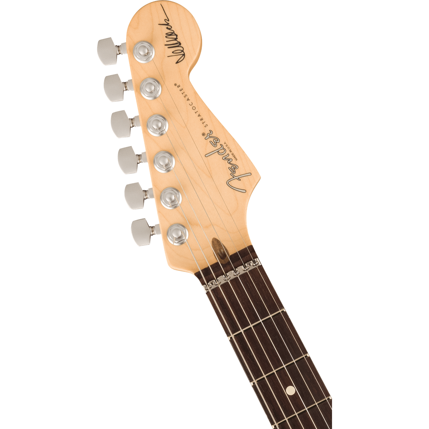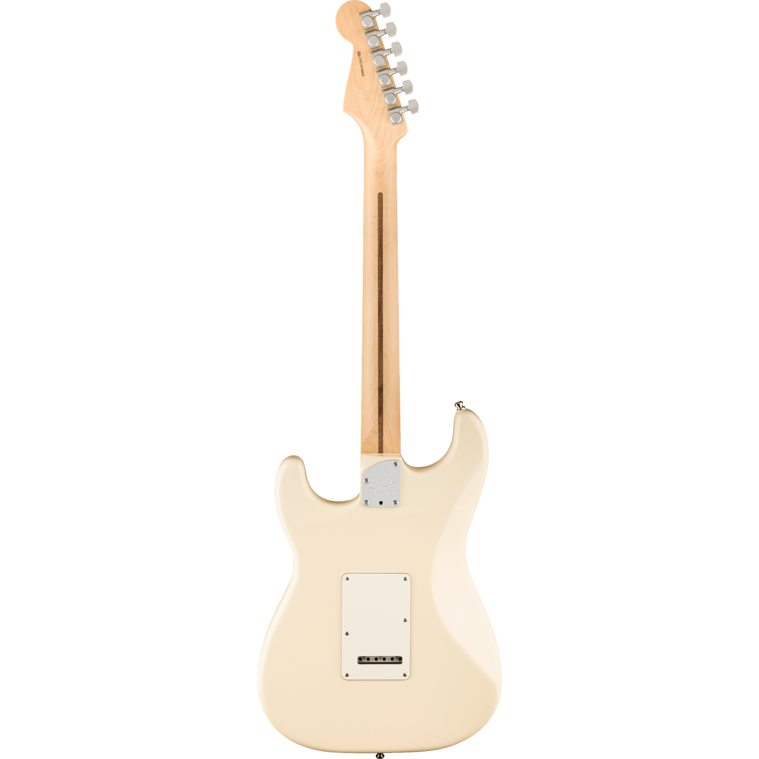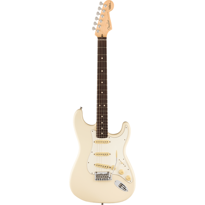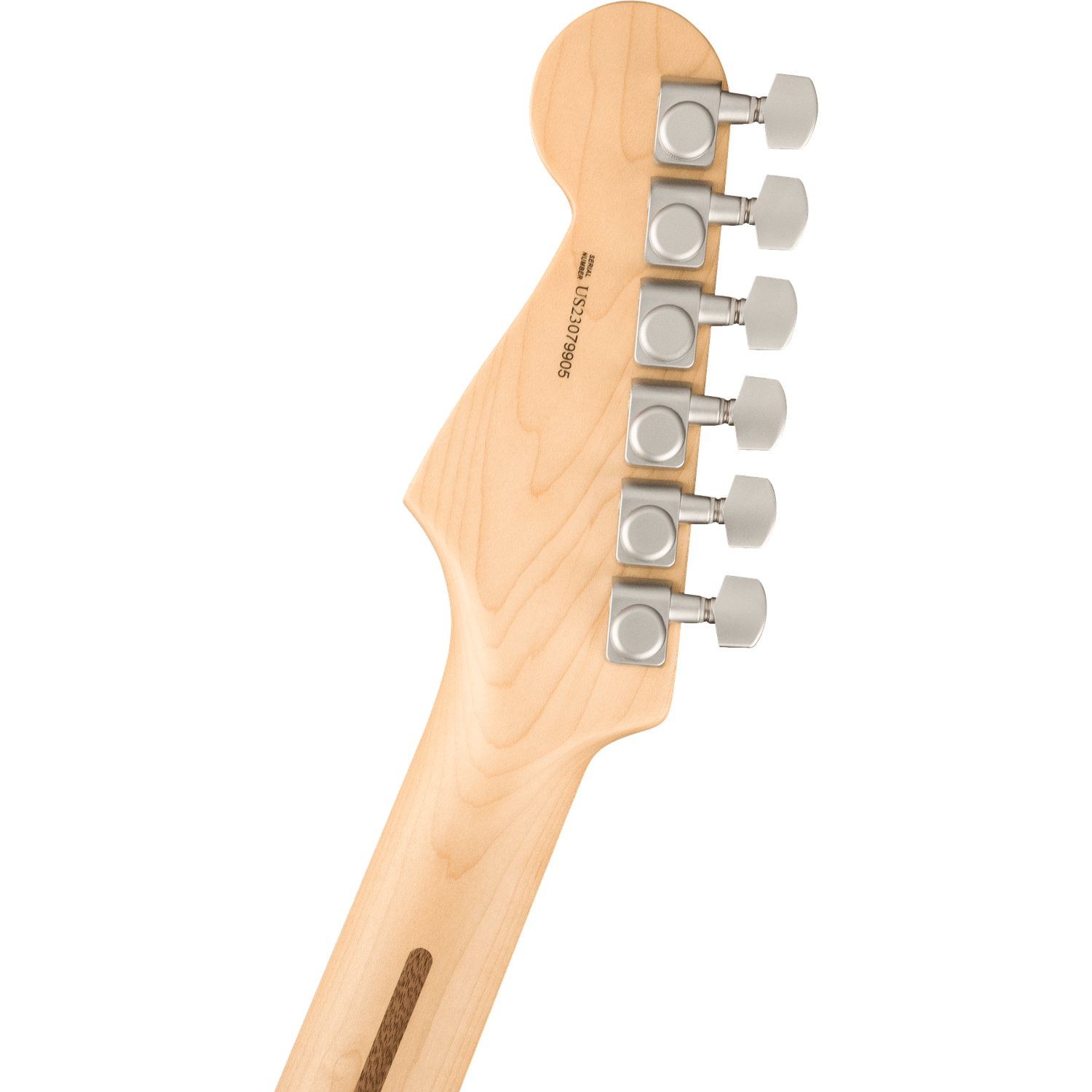 Middle and Neck Pickup, Position 5 Neck Pickup Pickup Configuration: SSS Hardware: Bridge: 2-Point American Series Synchronized Tremolo with Stainless Steel Saddles Tuning Machines: Deluxe Staggered Cast/Sealed Locking Orientation: Right-Hand Pickguard: 3-Ply Parchment Control Knobs: Aged White Plastic This product includes Beginner's Guide to Learning Guitar E-book.