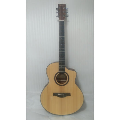 C shaped wood fixed mark visible near the neck, minor cracks at places on the front panel of the guitar.