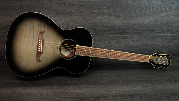 Fender FA-235E Concert Electro Acoustic Guitar Visually stunning, with a gorgeous flame maple top, the FA-235E offers legendary Fender sound at a budget friendly price. Quality laminate construction with a modern Fender 3 3 headstock and Viking bridge create an easy-playing instrument that sounds great. Modern Fishman electronics allowing you to take your sound to the stage with ease.