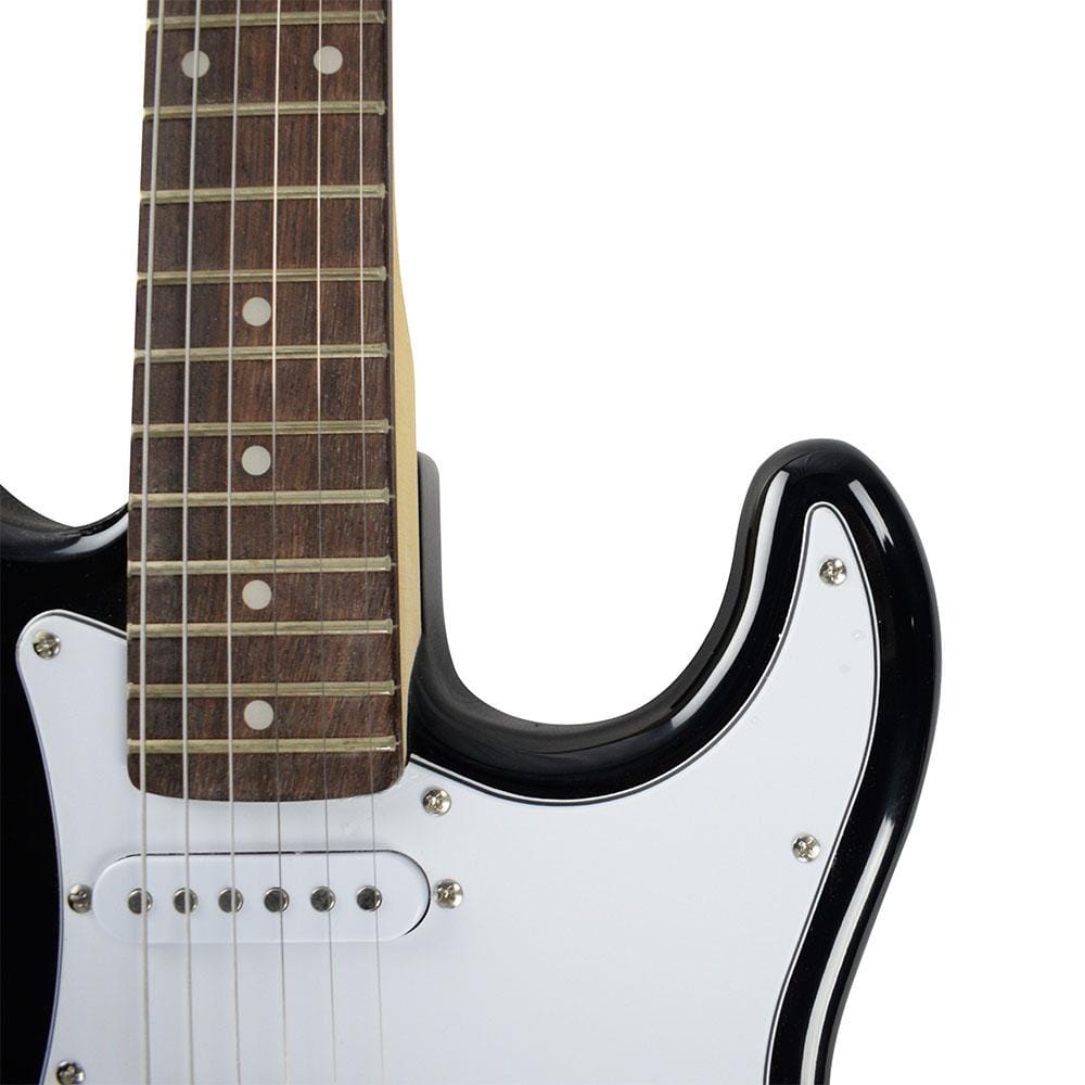 Vault ST1 Strat Style Electric Guitar The Vault ST1 Strat Style Electric Guitar is sure to stand out among other instruments in your collection. The chrome plating on the guitar's hardware ensures corrosion resistance and immense durability. The body of the guitar is constructed out of sycamore, which imparts adequate stiffness. This tonewood variety produces clean tones with well-defined treble notes. The maple neck produces bright tones with tight lows. Maple is resistant to climatic changes and guarantees longevity. The Indian Laurel/Walnut construction of the fretboard provides warm, mellow tones. Indian Laurel/Walnut contains a number of oily pores that absorb all undesirable overtones. As a result, you obtain sounds rich in fundamentals.