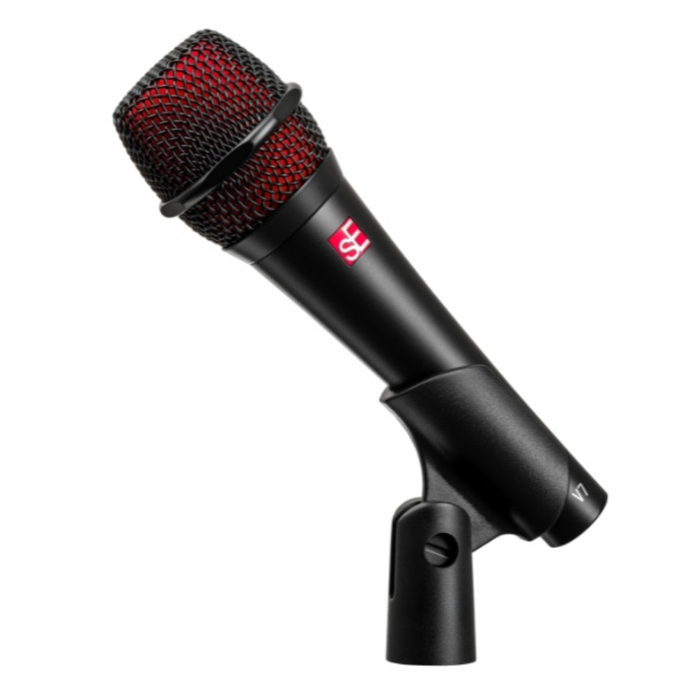 sE Electronics V7 Vocal Hand-Held Dynamic Microphone Overview: The V7 BLACK is an all-black version of our best-selling V7, a dynamic vocal hand-held microphone with a supercardioid polar pattern. It delivers a crisp, open sound that perfectly captures your voice and instruments in the most natural way you've ever heard on stage.