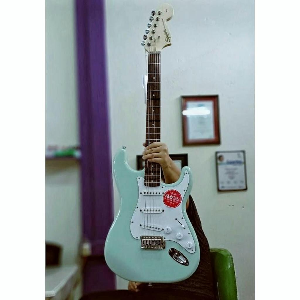 स्क्वायर एफिनिटी सीरीज़ स्ट्रैटोकास्टर, प्रतिष्ठित फेंडर परिवार में प्रवेश करने का एक शानदार माध्यम है। यह आज के उभरते गिटार वादकों के लिए बेहतरीन डिज़ाइन और बेजोड़ टोन प्रदान करता है। इस स्ट्रैट में कई ऐसे सुधार हैं जो वादक के लिए सुविधाजनक हैं, जैसे पतला और हल्का बॉडी, पतला और आरामदायक "C" आकार का नेक, बेहतर ट्रेमोलो एक्शन के लिए 2-पॉइंट ट्रेमोलो ब्रिज और सटीक ट्यूनिंग और आसान स्ट्रिंगिंग के लिए स्प्लिट शाफ्ट के साथ सीलबंद डाई-कास्ट ट्यूनिंग मशीनें। इसमें तीन स्क्वायर सिंगल-कॉइल स्ट्रैट पिकअप लगे हैं जिनमें 5-वे स्विचिंग की सुविधा है, जो विभिन्न शैलियों में ध्वनि की विविधता प्रदान करते हैं। यह मॉडल किसी भी स्तर पर किसी भी वादक का साथ देने के लिए तैयार है।