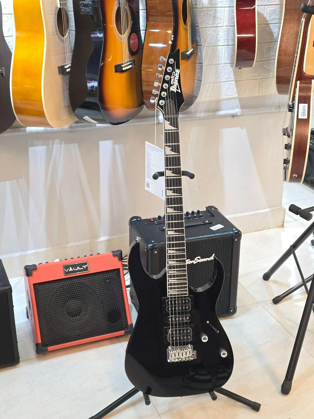 इबानेज़ जीआरजी170डीएक्स आरजी जियो सीरीज़ डबल कटअवे 6 स्ट्रिंग इलेक्ट्रिक गिटार का अवलोकन: एक गिटार की आवाज़ अच्छी हो, इसके लिए बहुत ज़्यादा कीमत चुकाने की ज़रूरत नहीं है। जियो सीरीज़ उन खिलाड़ियों के लिए विकसित की गई है जो इबानेज़ की गुणवत्ता को किफायती कीमत में चाहते हैं। ये गिटार न केवल अपनी कीमत सीमा में अन्य सभी गिटारों से बेहतर दिखते और बजते हैं, बल्कि इनकी कड़ी जांच, सेट-अप और वारंटी भी इबानेज़ के महंगे मॉडलों के समान ही है। विशेषताएं: मेपल नेक मेपल नेक स्थिरता और उत्कृष्ट ध्वनि प्रदान करता है। T102 ट्रेमोलो 10.5 मिमी स्ट्रिंग स्पेसिंग वाला T102 ब्रिज स्ट्रिंग्स पर आसानी से पिकिंग करने की सुविधा देता है। पर्पलहार्ट फ्रेटबोर्ड पर्पलहार्ट फ्रेटबोर्ड इस गिटार की सुंदरता और समृद्ध ध्वनि को निखारता है। मोनो-यूनिट आउटपुट जैक: मोनो-यूनिट आउटपुट जैक ठोस, टिकाऊ सामग्री से बना है और एक ही टुकड़े का है ताकि जैक की अनावश्यक हलचल और ढीलापन न हो, जिससे संपर्क में खराबी या डिस्कनेक्शन हो सकता है। यह नवाचार लंबे समय तक बजाने का आनंद और न्यूनतम रखरखाव सुनिश्चित करता है। इनफिनिटी आर / इनफिनिटी आरएस एचएसएच पिकअप: इबानेज़ इनफिनिटी पिकअप उत्कृष्ट डायनामिक्स के साथ सटीक और दमदार ध्वनि प्रदान करते हैं। भारी सेटिंग्स में भी, वे ध्वनि की स्पष्टता नहीं खोते हैं।