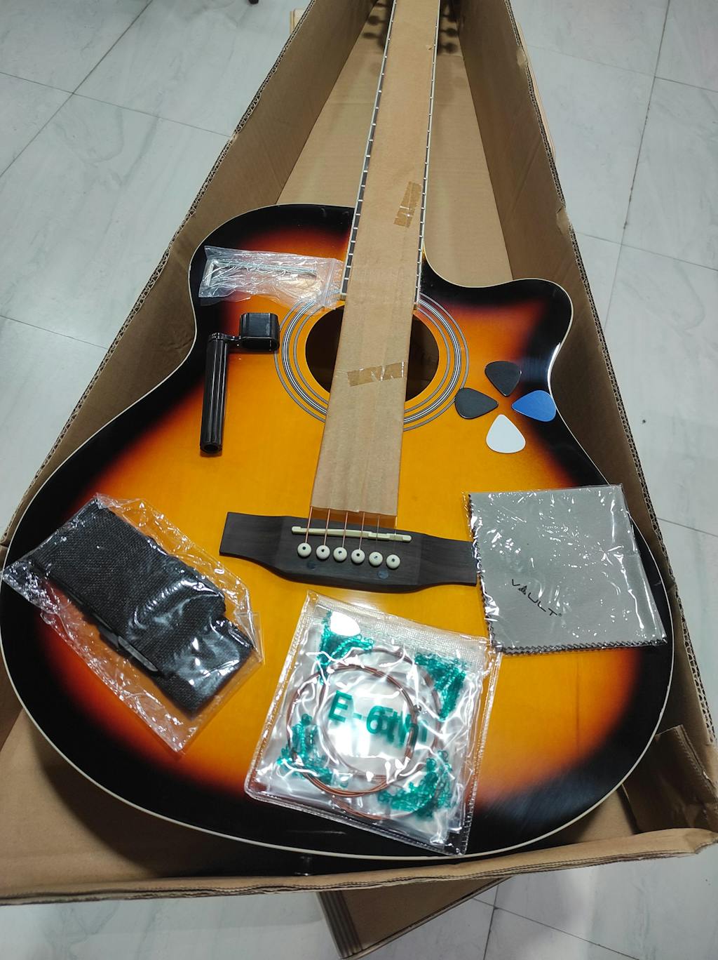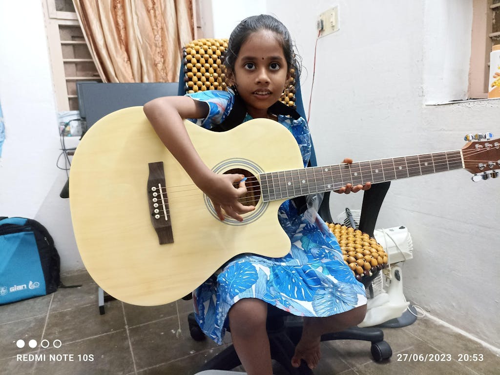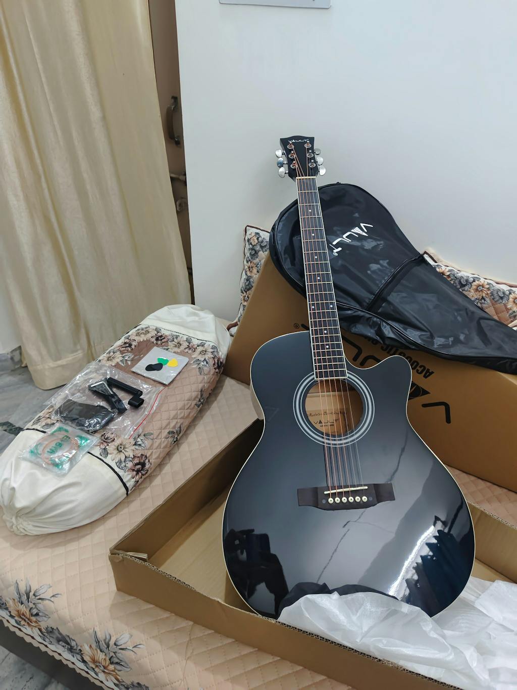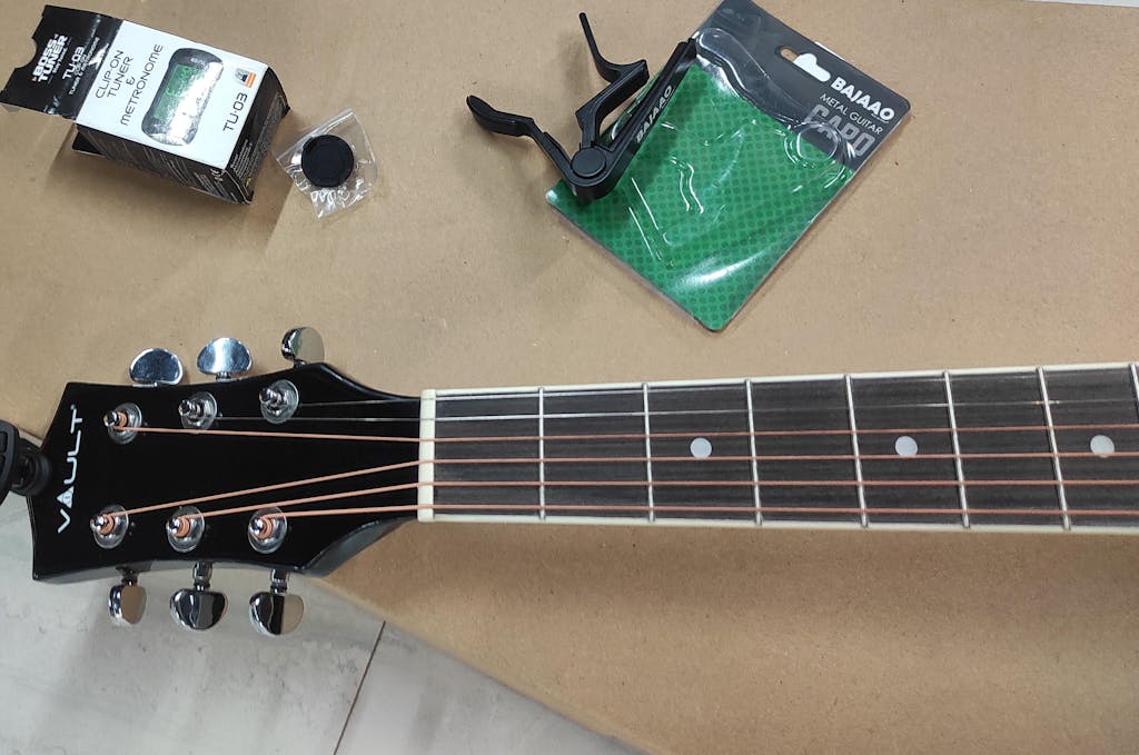 वॉल्ट EA20 एकॉस्टिक गिटार किट शुरुआती और शौकिया खिलाड़ियों के लिए एक संपूर्ण पैकेज है, जो किफ़ायती कीमत में गुणवत्ता, आराम और सुविधा चाहते हैं। यह 40 इंच का कटअवे स्टील-स्ट्रिंग एकॉस्टिक गिटार अपने बासवुड बॉडी के कारण समृद्ध और दमदार ध्वनि के साथ एक असाधारण वादन अनुभव प्रदान करने के लिए डिज़ाइन किया गया है। कटअवे डिज़ाइन ऊपरी फ्रेट्स तक आसान पहुँच सुनिश्चित करता है, जिससे यह सोलो और उन्नत तकनीकों के लिए एकदम सही है। चिकनी गर्दन और आरामदायक फ्रेट स्पेसिंग के साथ तैयार किया गया, EA20 बजाने में आसान है और सीखने के लिए आदर्श है। अंतर्निर्मित ट्रस रॉड गर्दन को लंबे समय तक स्थिरता प्रदान करता है, जिससे यह सुनिश्चित होता है कि गिटार बदलते मौसम और बार-बार उपयोग के बावजूद विश्वसनीय बना रहे। डाई-कास्ट ट्यूनर सटीक और स्थिर ट्यूनिंग प्रदान करते हैं, जिससे आप अधिक समय बजाने में और कम समय एडजस्ट करने में बिता सकते हैं। इस संपूर्ण किट में वह सब कुछ शामिल है जिसकी एक शुरुआती गिटार वादक को शुरुआत करने के लिए आवश्यकता होती है: सुगमता के लिए एक गिग बैग, 'लर्न टू प्ले' ईबुक, तारों का एक अतिरिक्त सेट, स्ट्रैप, पिक, स्ट्रिंग वाइंडर और गिटार को हमेशा बेहतरीन बनाए रखने के लिए एक पॉलिशिंग कपड़ा। चाहे आप अभी-अभी संगीत की दुनिया में कदम रख रहे हों या अभ्यास के लिए एक भरोसेमंद ध्वनिक गिटार की तलाश में हों, वॉल्ट ईए20 बेहतरीन मूल्य, ध्वनि गुणवत्ता और टिकाऊपन के साथ एक तैयार पैकेज में उपलब्ध है।