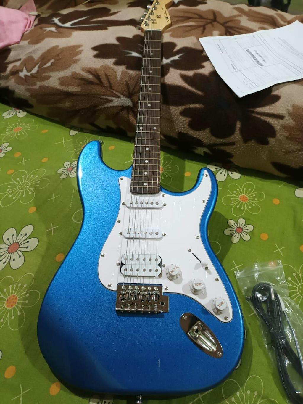 वॉल्ट ST1 स्ट्रैट स्टाइल इलेक्ट्रिक गिटार आपके संग्रह में मौजूद अन्य वाद्ययंत्रों के बीच अपनी अलग पहचान बनाएगा। गिटार के हार्डवेयर पर क्रोम प्लेटिंग जंग से सुरक्षा और अत्यधिक टिकाऊपन सुनिश्चित करती है। गिटार का ढांचा सिकोमोर की लकड़ी से बना है, जो इसे पर्याप्त मजबूती प्रदान करता है। यह टोनवुड स्पष्ट और परिभाषित ट्रेबल नोट्स के साथ स्वच्छ स्वर उत्पन्न करता है। मेपल की गर्दन चमकदार और दमदार लो नोट्स उत्पन्न करती है। मेपल जलवायु परिवर्तन के प्रति प्रतिरोधी है और दीर्घायु की गारंटी देता है। फ्रेटबोर्ड का इंडियन लॉरेल/वॉलनट निर्माण गर्म और मधुर स्वर प्रदान करता है। इंडियन लॉरेल/वॉलनट में कई तैलीय छिद्र होते हैं जो सभी अवांछित ओवरटोन को अवशोषित कर लेते हैं। परिणामस्वरूप, आपको मूलभूत स्वरों से भरपूर ध्वनि प्राप्त होती है। वॉल्ट के सभी उत्पादों पर 3 साल की मानक वारंटी मिलती है। केबल और सहायक उपकरणों पर वारंटी लागू नहीं होती है। छात्रों के लिए विशेष छूट: वॉल्ट शिक्षा के प्रति प्रतिबद्ध है और छात्रों को 5% की अतिरिक्त छूट प्रदान करता है। यह छूट किसी भी मौजूदा छूट कूपन के अतिरिक्त है। यदि आप स्कूल या कॉलेज के छात्र हैं, तो अपना ऑर्डर देने और 5% की अतिरिक्त छूट का लाभ उठाने के लिए हमारे बिक्री एजेंट को 022-4203 5353, एक्सटेंशन 1 पर कॉल करें। (आपको अपने छात्र होने का प्रमाण, जैसे कि आपका स्कूल या कॉलेज का पहचान पत्र, ईमेल द्वारा भेजना होगा।)