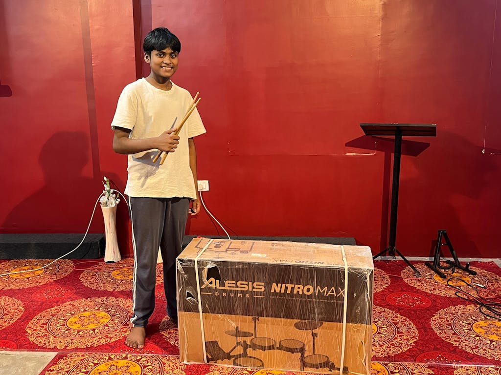 It features a 10” dual-zone snare drum for dynamic play, (3) 8” toms, (3) 10” cymbals, A kick drum tower, as well as kick and hi-hat pedals, plus the necessary cabling, a rock solid rack stand, sticks and drum key. Nitro Max includes an amazing sounding collection of realistic drum and percussion sounds.