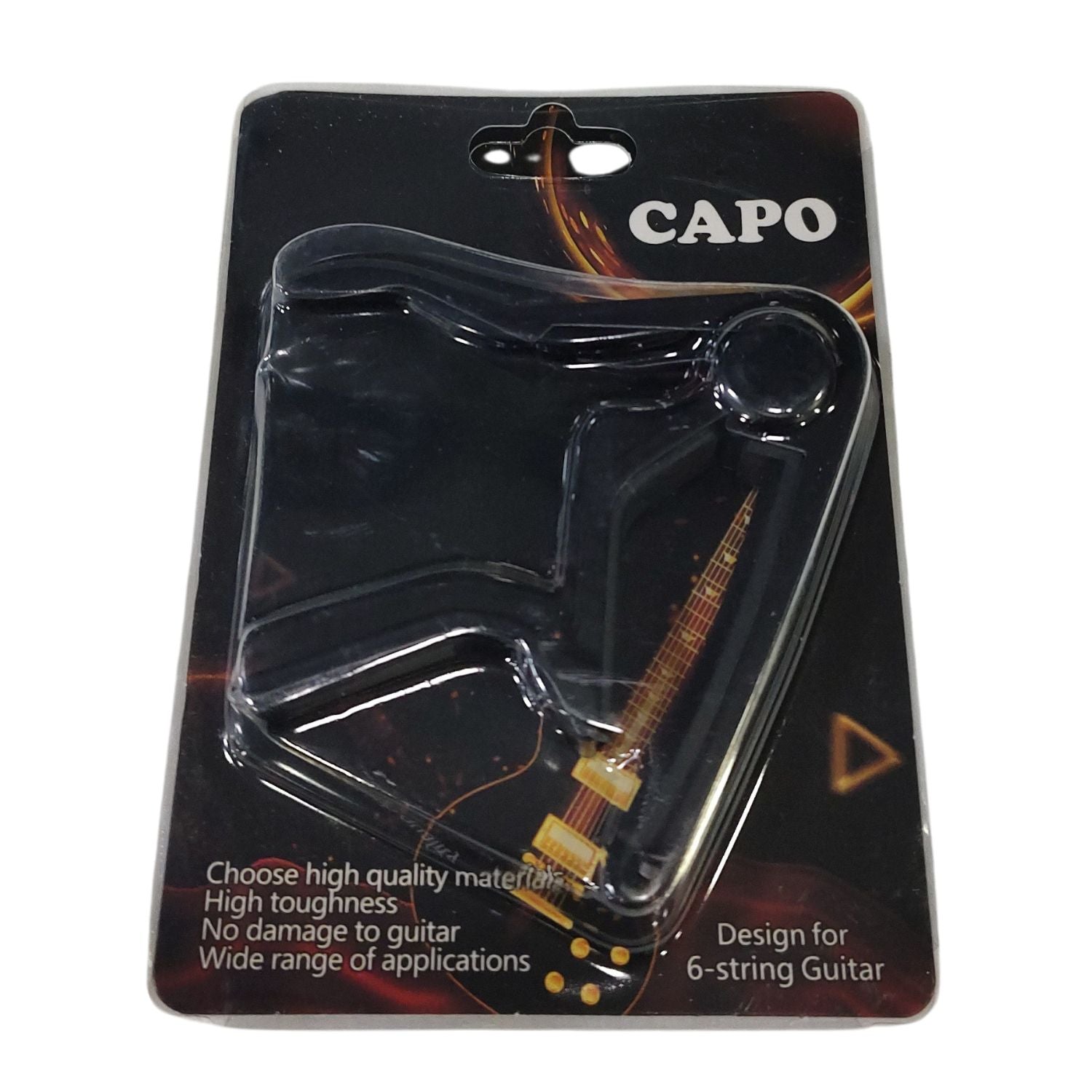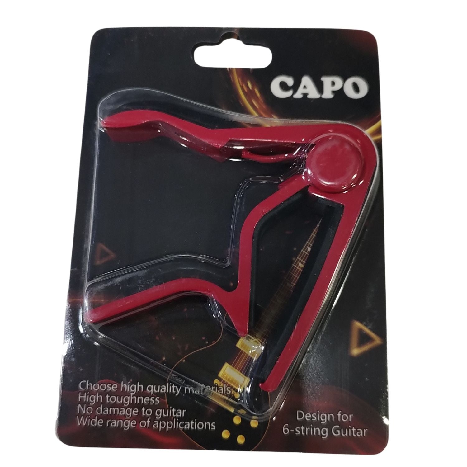Protects your Instrument The capo also comes with silicone padding on both inner sides to protect your instrument from any scratches. Specifications: Material: Complete Metal Inside: Silicon Cushioning Compatible with : Acoustic Guitar , Electric Guitar , Bass, Ukulele , Mandolin, Banjo, etc. Colors Available : Black, Red & Silver