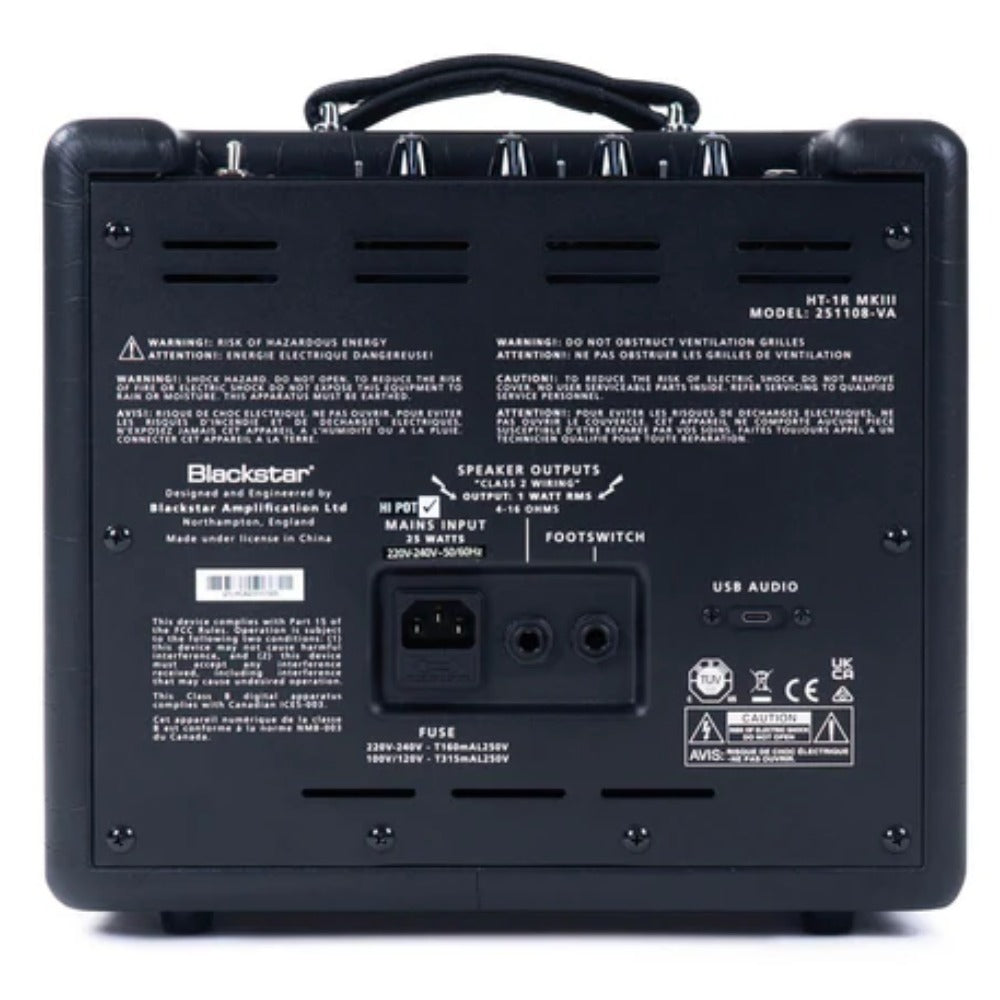 Blackstar HT-1R MKIII 1 x 8-inch 1-watt Combo Tube Amplifier Overview: WATTAGE: 1W VALVES: ECC83 Preamp, ECC82 Power Amp CHANNELS/VOICES: 2 Channels, 2 Voices Per Channel FOOTSWITCHABLE: Yes - Channels & Voices SPEAKERS: 1x 8" Blackstar Designed REVERB: Yes CABRIG OUTPUT: Yes (USB-C & Jack) EFFECTS LOOP: No USB RECORDING: Yes (USB-C) WEIGHT: 5.6kg DIMENSIONS: 311 x 306 x 178 (mm)