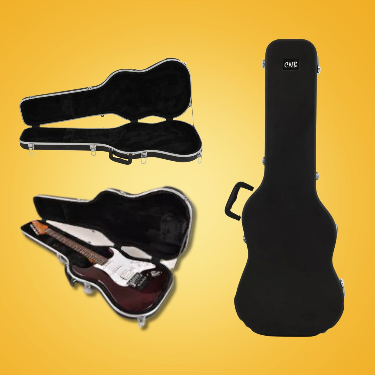 CNB EC60 ABS Case for Electric Guitar Overview: Plastic case for electric guitar (Singlecut). Heavy-duty case designed for the traveling musician on a budget.Provides a high degree of protection. Covered with heavy duty black vinyl. 3 chrome latches, 1 with a lock,Carrying handle, Compartment inside to hold straps, cables, picks, and other small accessories, Light weight, yet remarkably strong.