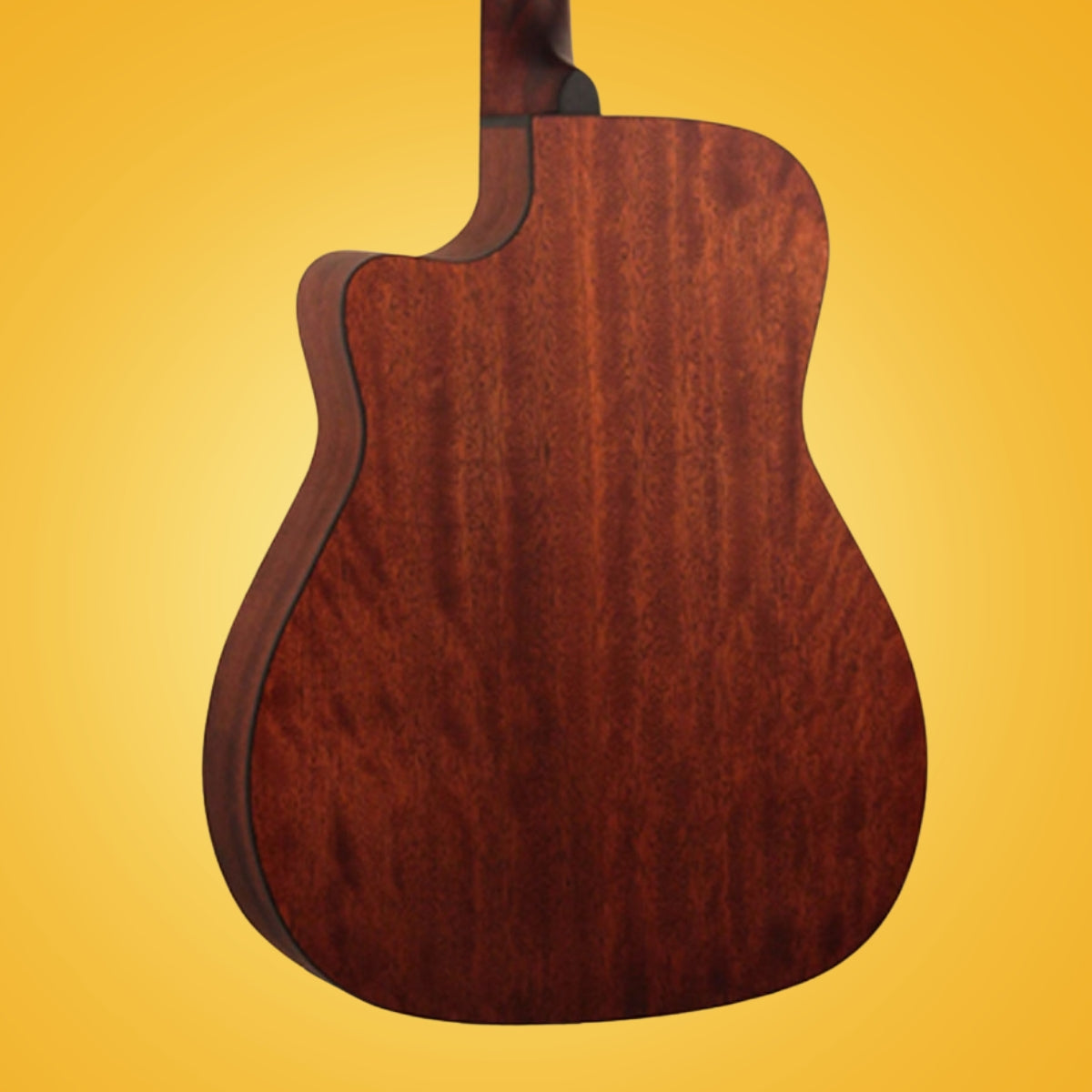 Mahogany Back & Sides Bright yet natural with a strong and warm midrange, the beloved mahogany wood has been a standard for back and sides on premium acoustics for many decades. Coated Strings High-quality coating on the strings resist humidity, dirt and sweat for long string life and improved playability.