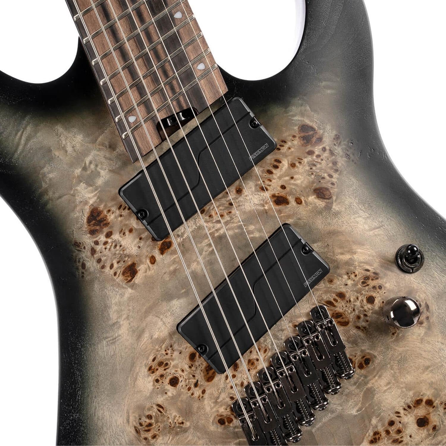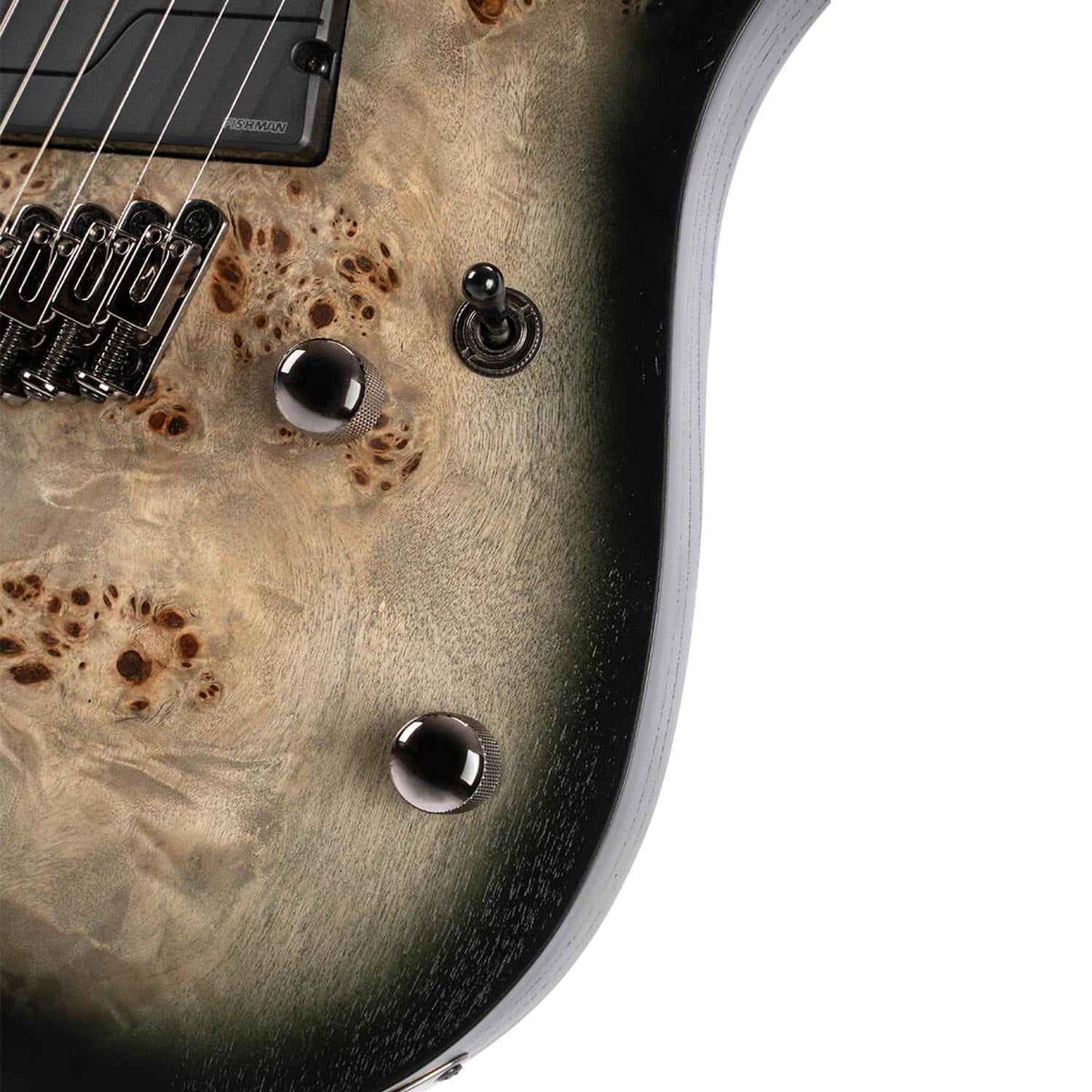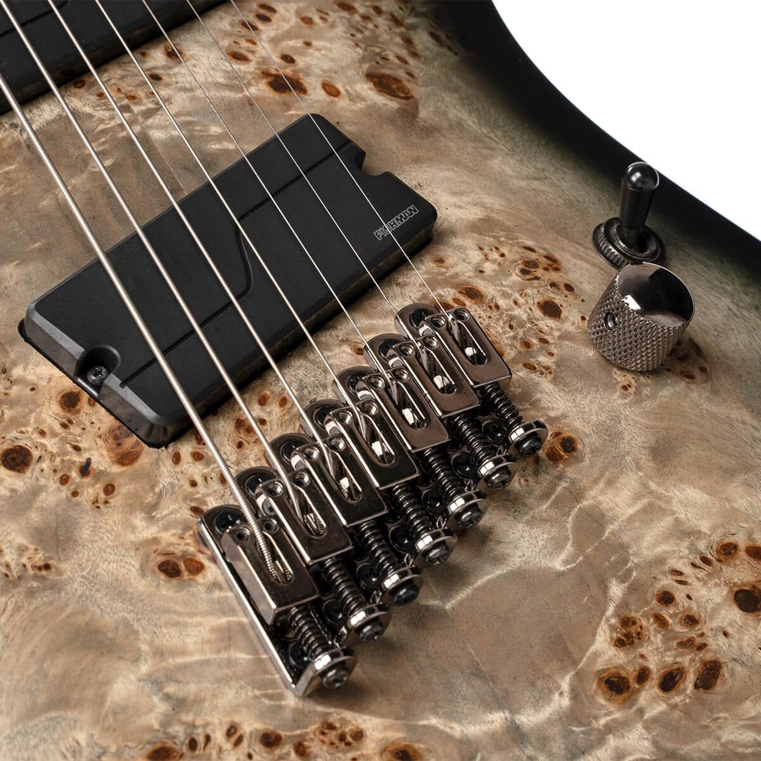 Poplar Burl Top on Mahogany Body The strikingly figured Poplar Burl top and Mahogany body complement each other perfectly to produce a warm yet punchy high-midrange sound that will cut through the mix with authority Fishman Fluence Modern Humbucker Set for 7-Strings Original and totally re-imagined Fishman Fluence pickups are free from the hum noise and frustrating inductance issues that plague even the most coveted wire wound pickups— revealing pure uncorrupted and musical tone.