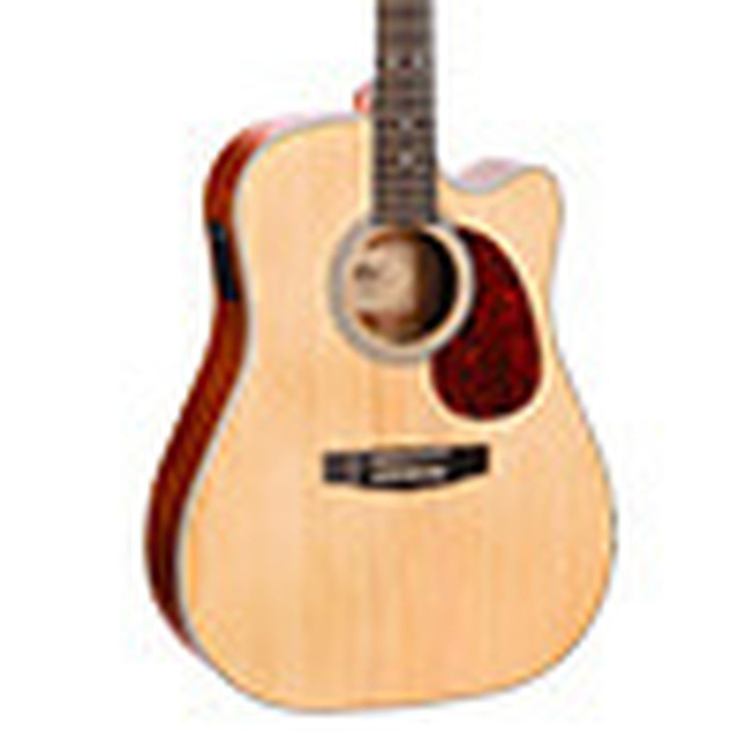 Cort MR500E Dreadnought Cutaway Electro Acoustic Guitar Overview: The MR Series represents Cort’s mission to provide the highest quality traditional instruments with superb workmanship and modern features at an unbeatable value. The classic dreadnaught body has a Venetian cutaway for easy high fret access and is equipped with Fishman electronics to deliver the MR’s natural acoustic sound to an amplification system for both live and recording applications.