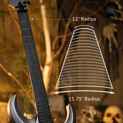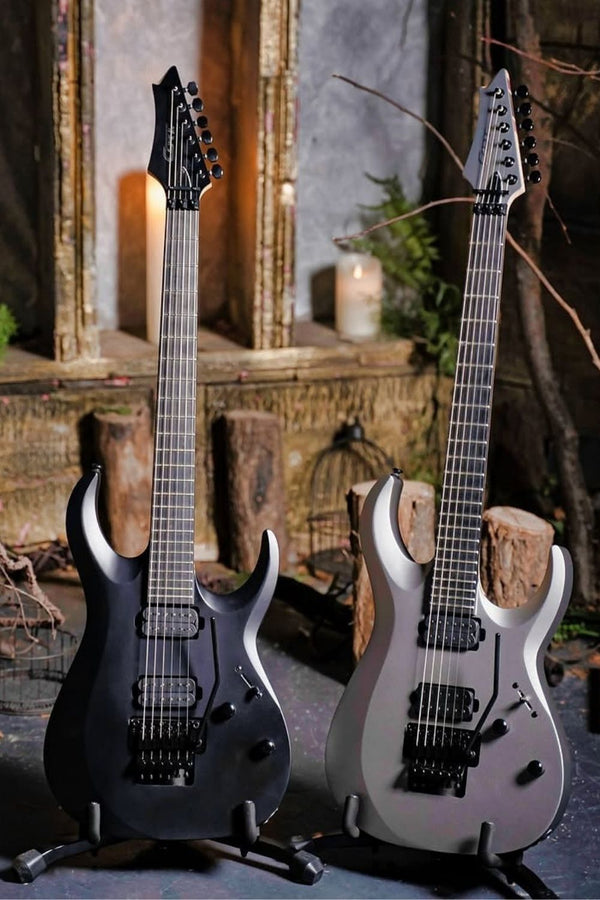 While maintaining the neck-thru-body construction for exceptional sustain and high frets access, the X500 Menace now features a more popular maple top on mahogany body combination, reverse headstock, 7-piece Maple / Purple Heart / Panga Panga neck and compound radius fingerboard, FloydRose 1000 Series tremolo, and Seymour Duncan Sentient & Nazgul Humbucker set for superb playability, sound quality, and that menacing presence the guitarists for extreme genre seek.