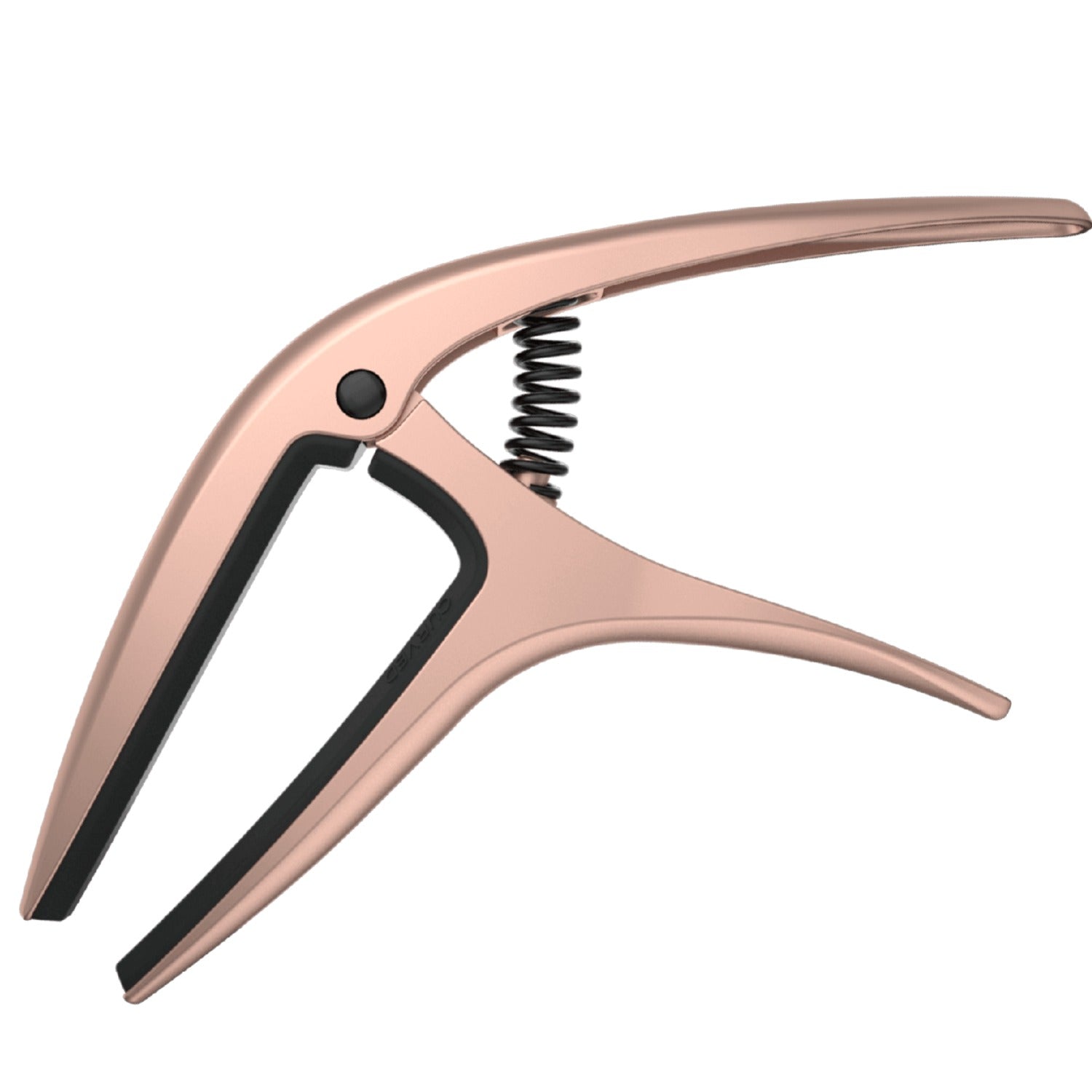 Ernie Ball Dual Radius Axis Capo - Rose Gold Satin Overview: The Ernie Ball Axis Capo’s ergonomic features allow for fast and accurate single-handed key changes. Compatible with most electric and acoustic guitars the Axis Capo offers eight color finishes to match with a dual-radius design that fits both flat and curved fretboards.