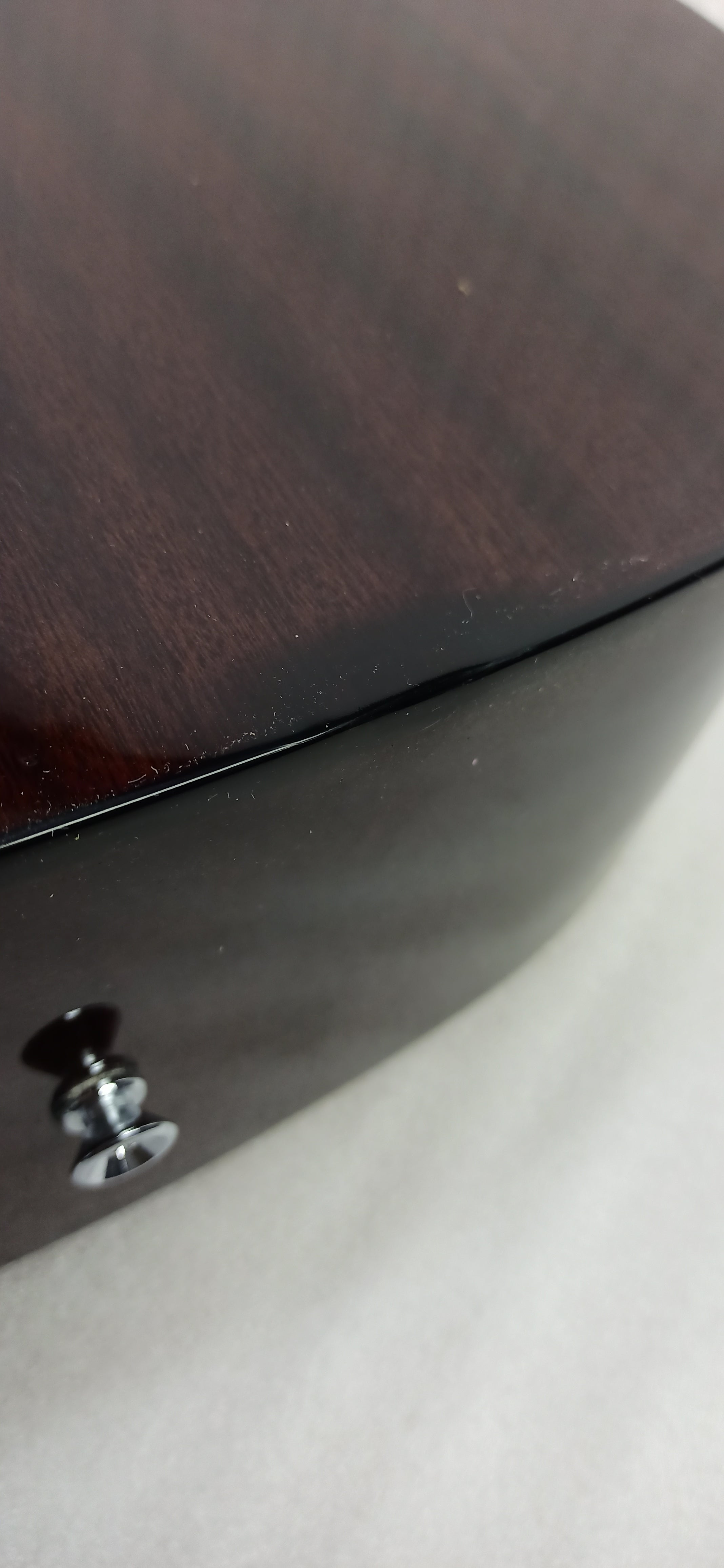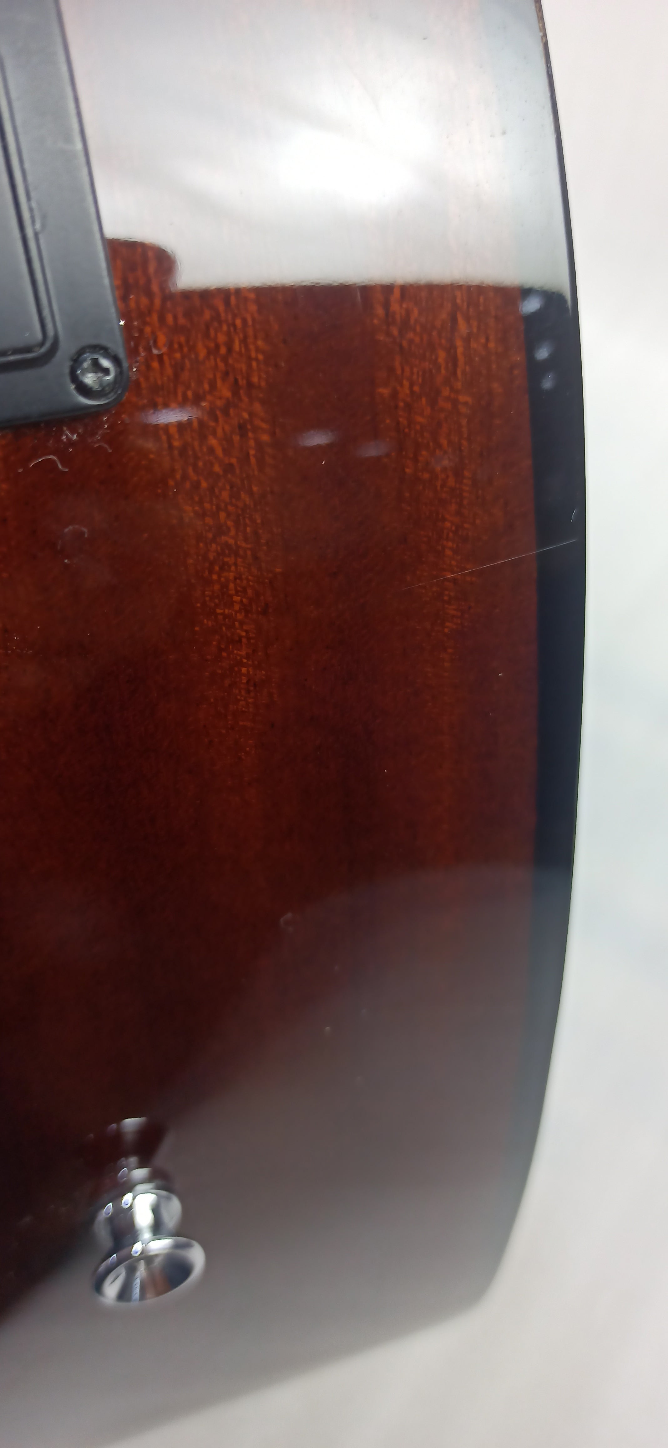 Minor scratch mark on the side panel of the guitar. Finishing error on the lower front panel of the guitar.