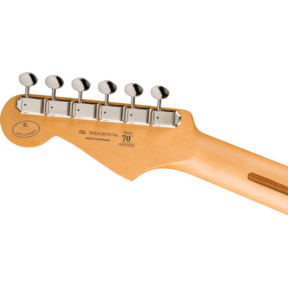 The Player II Stratocaster HSS radiates timeless Fender charm, but under the hood, it's primed for today's players. Everything about the neck is designed for fast and fluid playability, from the Modern "C"-profile with silky satin urethane finish on the back to the comfy 9.5"-radius slab rosewood or maple fingerboard with smooth rolled edges and 22 medium jumbo frets. Choose from alder, chambered ash or chambered mahogany bodies available in both classic Fender finishes and never-before-seen colors unearthed from the archives. Player Series Alnico V Single-Coil Strat pickups and a Player Series Alnico II humbucker offer crystalline highs, musical mids and tight lows that elevate any genre. The 5-way blade switch lets you dial in everything from glassy neck pickup chime to rowdy bridge pickup roar and all points in between, while a 2-point tremolo and ClassicGear tuners ensure precise tuning stability for the flexibility to explore endless sonic possibilities.