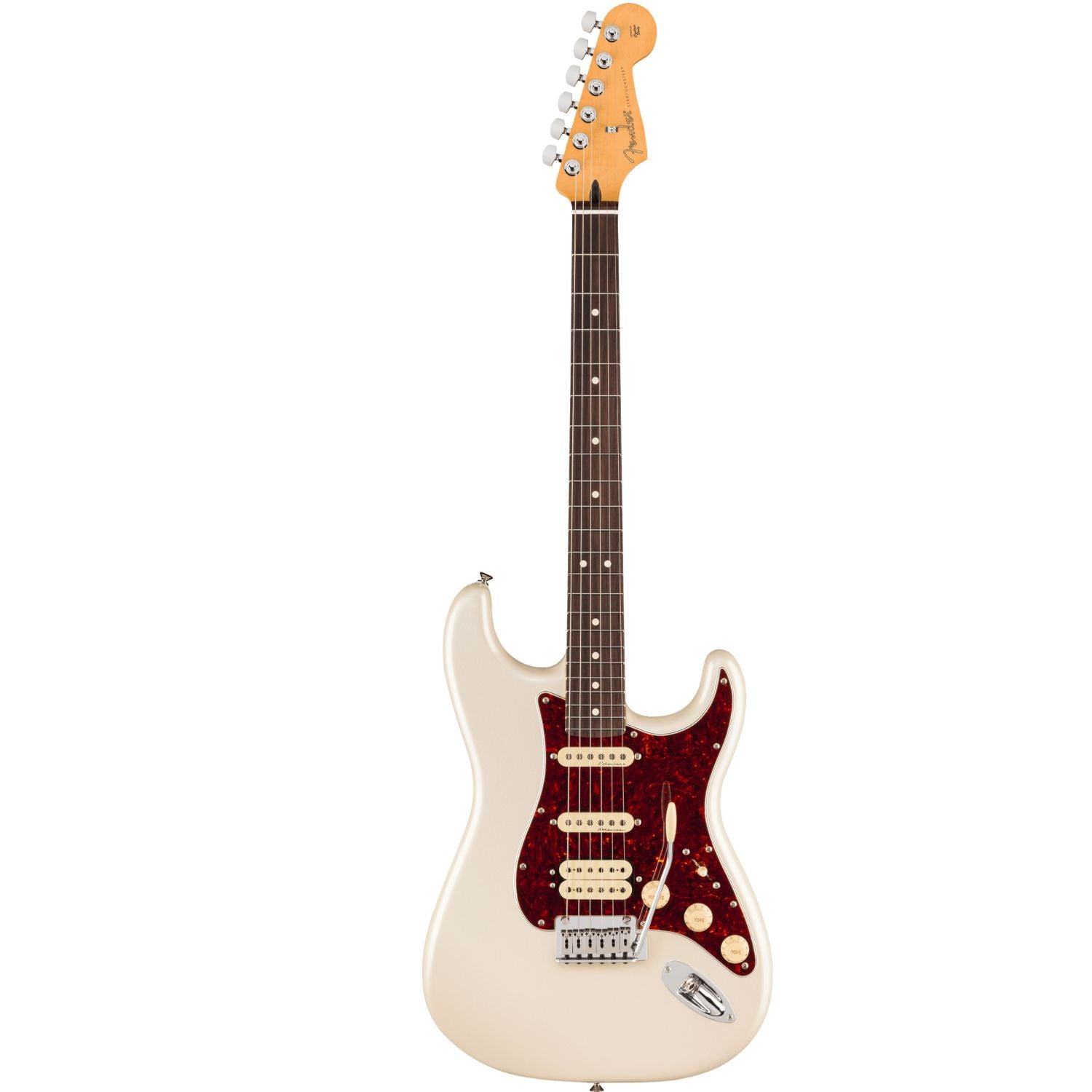 The Player II Modified Stratocaster HSS is a classic guitar with the modern player in mind. Everything about the neck is designed for fast and fluid playability, from the Modern βCβ-profile with silky satin urethane finish on the back to the comfy 9.5β-radius slab rosewood or 1-piece maple fingerboard with smooth rolled edges and 22 medium jumbo frets. The alder body provides classic Fender punch and is available in a variety of exciting new finishes. The Player II Modified humbucker is articulate with plenty of output while the noiseless pickups deliver classic Strat chime and sparkle while eliminating unwanted noise. For additional tonal flexibility the push/pull switch on the 2tone control splits the bridge humbucker for classic Strat single-coil tones. The 2-point tremolo, short post locking tuners, TUSQ nut and modern string tree all combine to keep tuning incredibly stable as the wider travel of the chamfered tremolo block allows players to coax even more expressive, musical vibrato from their instrument.