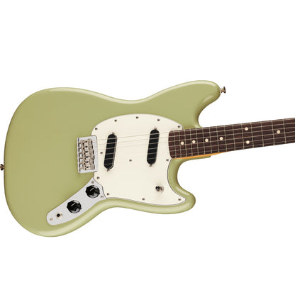 Player Series Alnico V Single-Coil Mustang pickups offer crystalline highs, musical mids and tight lows that elevate any genre. The 3-way toggle switch lets you easily dial in everything from glassy neck pickup chime to cutting bridge pickup snarl and all points in between, while a 6-saddle hardtail bridge, bent steel saddles and ClassicGear tuners ensure precise tuning stability for the flexibility to explore endless sonic possibilities.