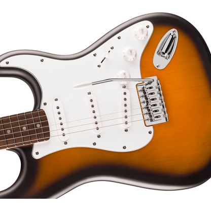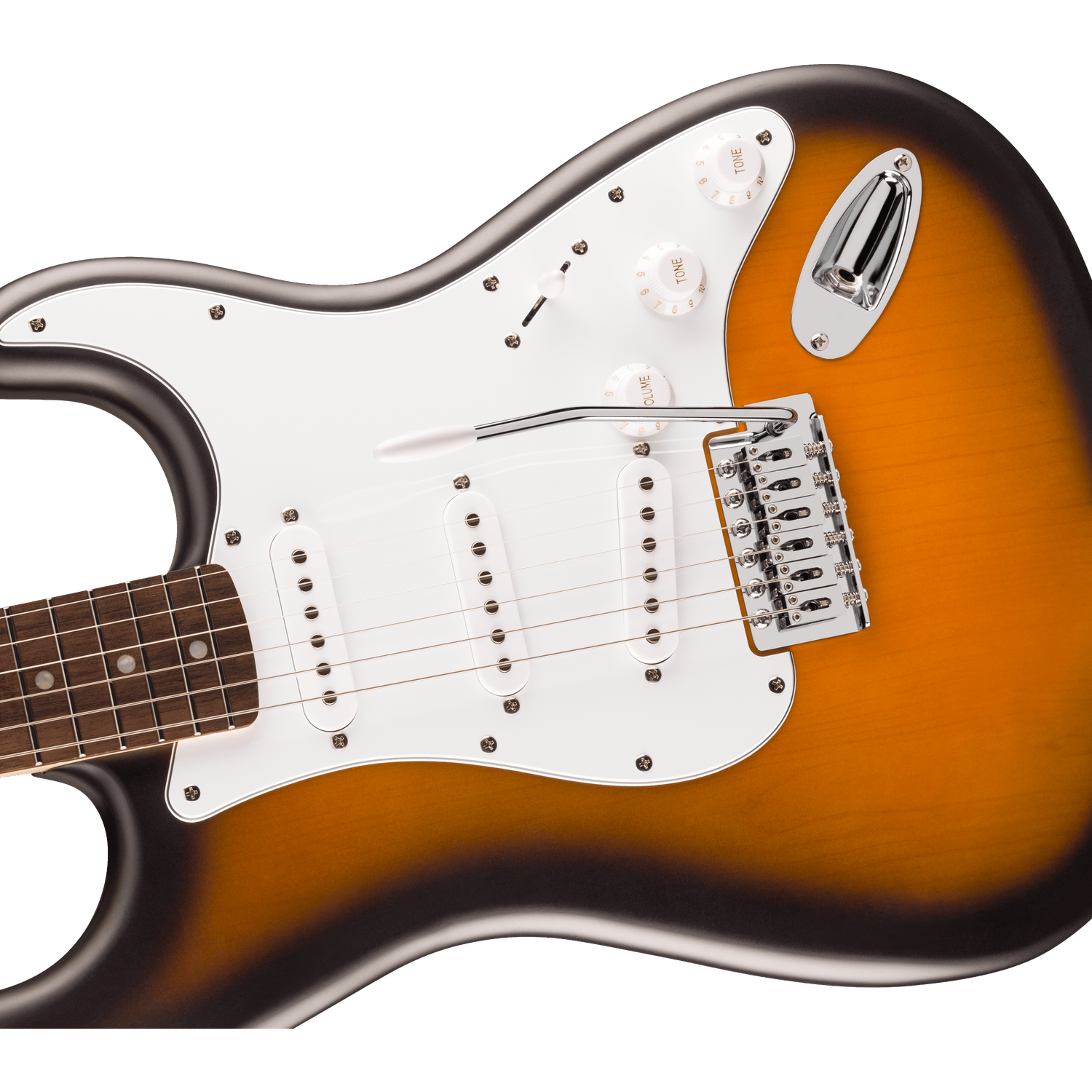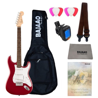 Fender Squier Debut Stratocaster Electric Guitar With Gigbag, Polishing Cloth, Picks, Strap, Tuner & Ebook Designed for beginners, the Squier Debut collection features the iconic Fender Stratocaster and Precision Bass models with super-comfortable necks and thin, lightweight bodies for more comfort and playability.