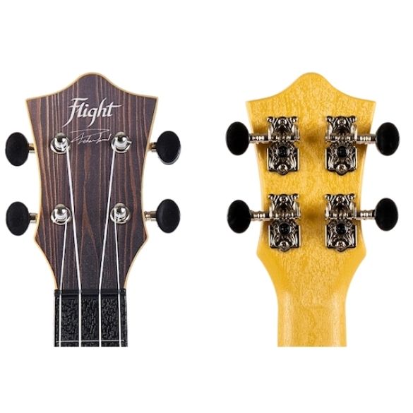 Flight Travel Ukuleles have been acclaimed for their great sound, playability, durability, and value. Flight Concert Travel Ukuleles (TUC) have a slightly larger body and a slightly longer fretboard than the Soprano Travel Ukulele, resulting in a larger sound–all the great qualities of the TUS, but bigger. Players with larger hands will enjoy the extra room on the fretboard.