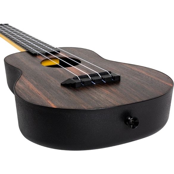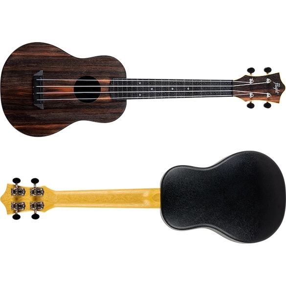 The Flight TUC-55 Amara Concert Ukulele features a laminate amara top. Amara is an ebony full of darkness and exciting grains, and has a deep, mysterious sound with good volume. The ukulele also incorporates an ABS body, neck, fretboard and bridge. The result is a ukulele with low action that is easy to clean and maintain. Want a ukulele that is tough, looks awesome, sounds great, plays well, and is ideal for players of any skill level? If so, check out the Flight TUC-55 Amara Ukulele at your local Flight dealer!