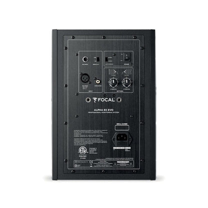 Focal Alpha 65 Evo Active 2-Way Versatile Professional Monitor Speaker Overview: Alpha 65 Evo has a 1” (25mm) aluminium tweeter and a 6.5” (16.5 cm) woofer with Slatefiber cone developed and manufactured in Focal's workshops in France. This monitor features excellent dynamics and neutrality in its tonal balance. Its technologies mean that Alpha 65 Evo can guarantee excellent sonic coherence wherever you are listening.