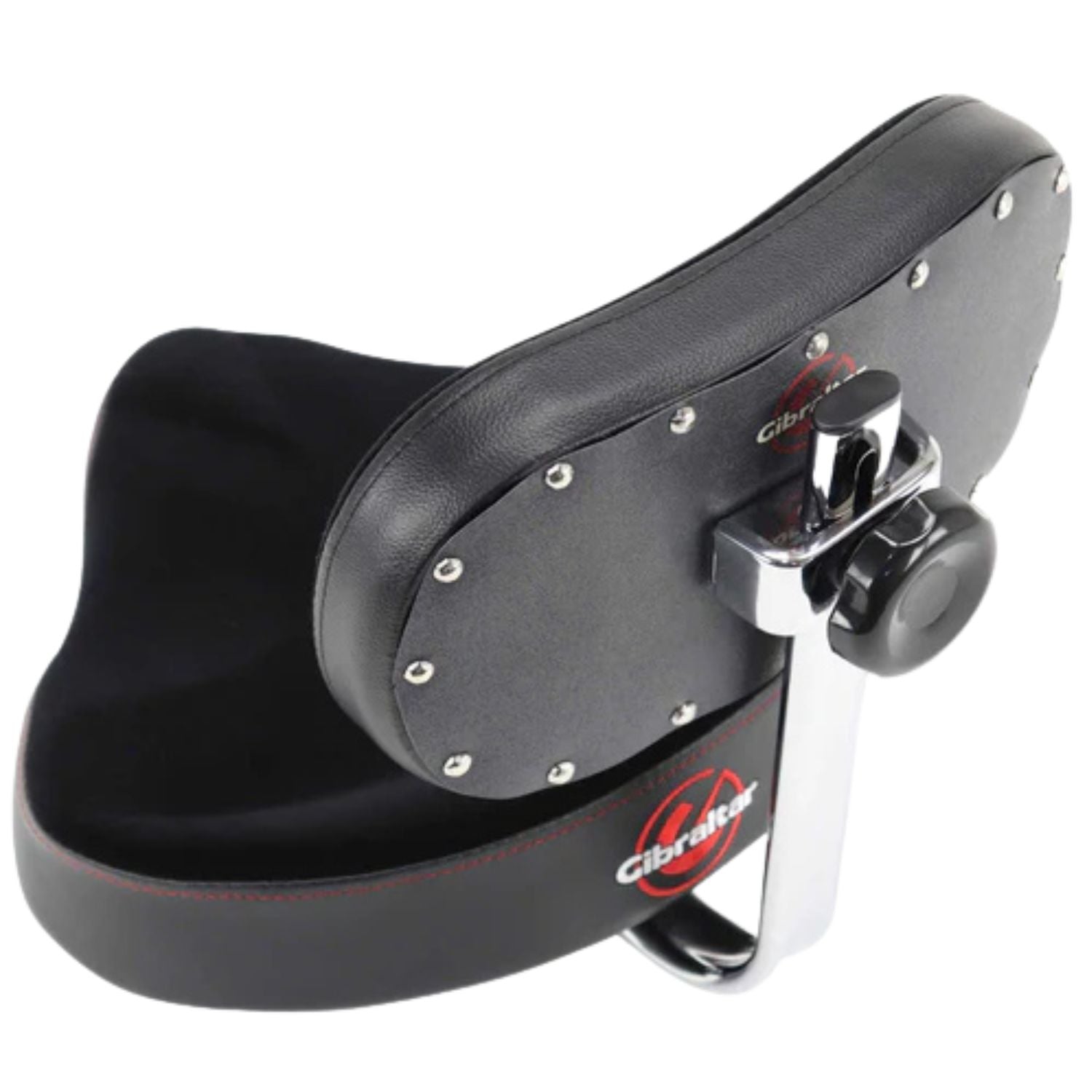 Gibraltar 9608MB 9000 Series 16" Cordura Saddle Drum Throne with Backrest Overview: This heavy-duty, double-braced throne is built to withstand the roughest treatment. The durable, vinyl motorcycle-style top has thigh cutouts and memory foam, allowing maximum mobility and comfort. You can adjust the height by spinning the top in either direction and locking it in place. The adjustable backrest provides lower back support for long playing sessions.