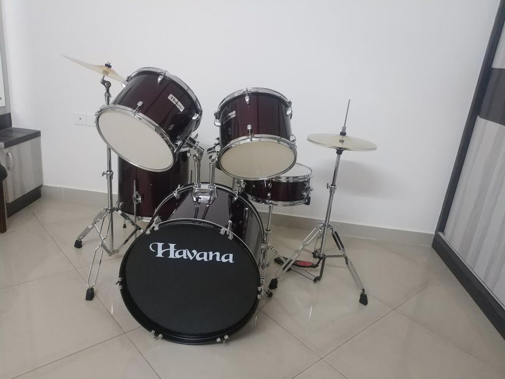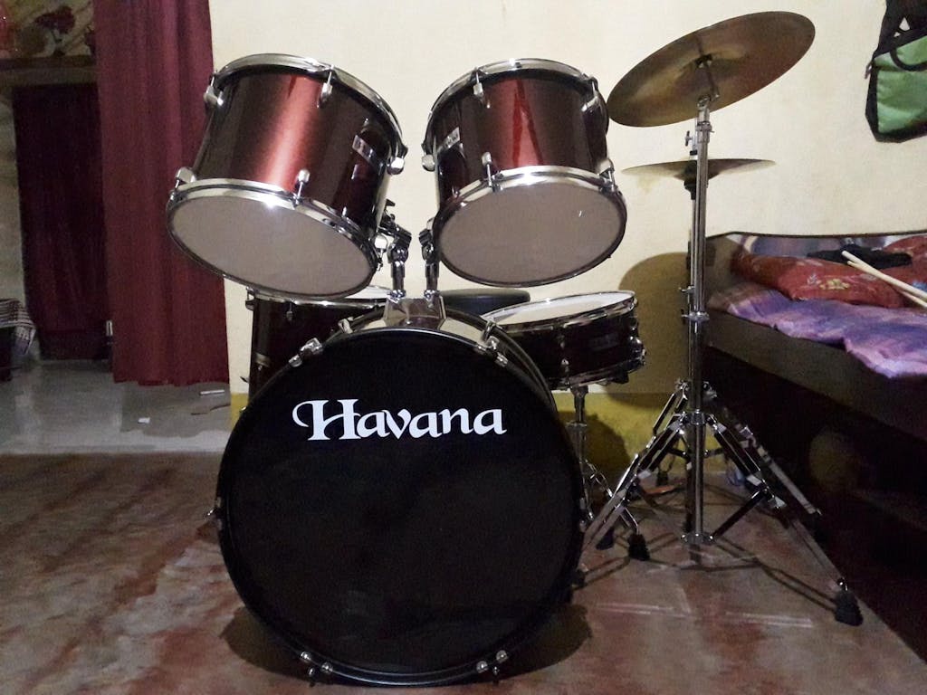 HAVANA HV 522 Features: Brand : Havana Product Type : Drumkits Features : Perfect for young players looking for a strong playable kit Durable PVC wrap Includes Cymbals, Drum Pedal and Drum Throne Full hardware pack Specifications: Drum : 22″ x 16″ – Bass Drum 16″ x 16″ – Floor Tom 13″ x 10″ – Tom Tom 12″ x 9″ – Tom Tom 14″ x 5.5″ - Snare Drum Hardware : S-2TS Snare Stand C-3DS Cymbal Stand H-4ES Hi Hat Stand P-6K Pedal T1D Throne Cymbals : 14″ x 2″ H 16″ x 1″ This product includes Beginner's Guide to Learning Drums E-book Made in China