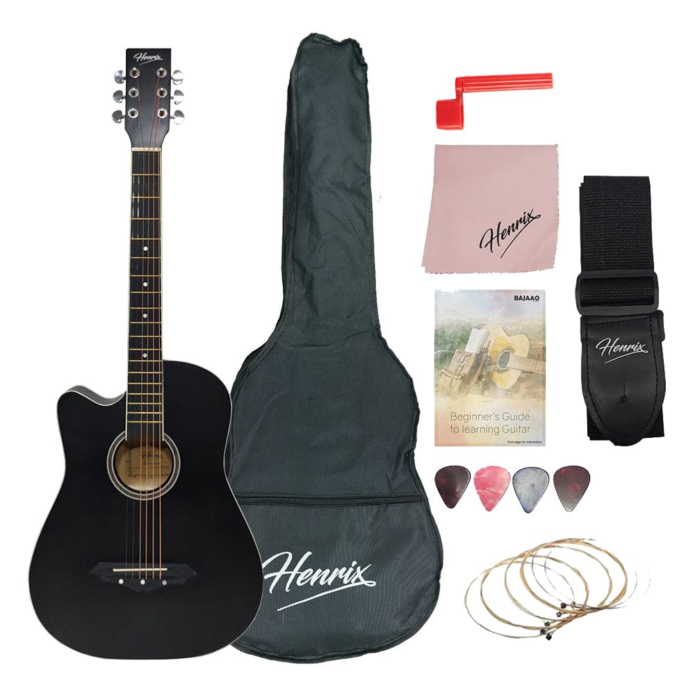Available in five color finishes—Natural, Black, Sunburst, Red, and Blue-Burst—the Henrix 38C is both stylish and functional. Also included is a Beginner’s Guide to Learning Guitar E-book, making it a perfect first instrument for aspiring guitarists.