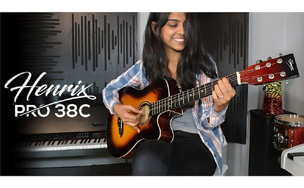 The Henrix PRO 38C is a high-value acoustic guitar built with features typically found only in professional-grade instruments. Designed as an upgrade over the Henrix 38C, it incorporates quality enhancements like die-cast tuners, ABS binding, and a dual-action truss rod—all contributing to better performance, tuning stability, and extended durability.
