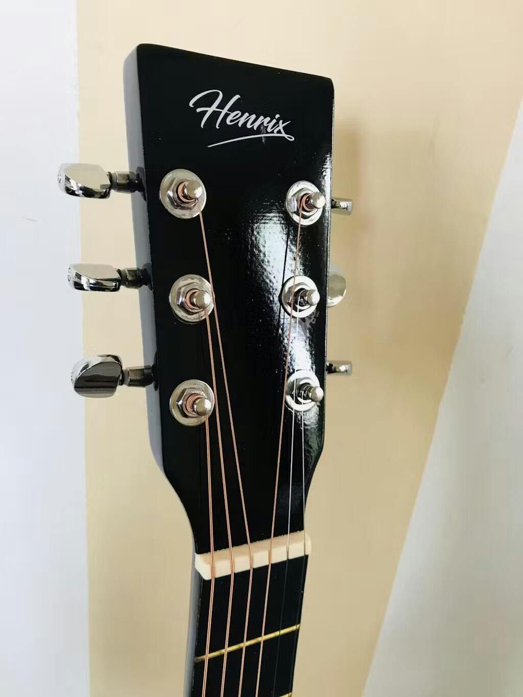 The Henrix PRO 38C is a high-value acoustic guitar built with features typically found only in professional-grade instruments. Designed as an upgrade over the Henrix 38C, it incorporates quality enhancements like die-cast tuners, ABS binding, and a dual-action truss rod—all contributing to better performance, tuning stability, and extended durability.