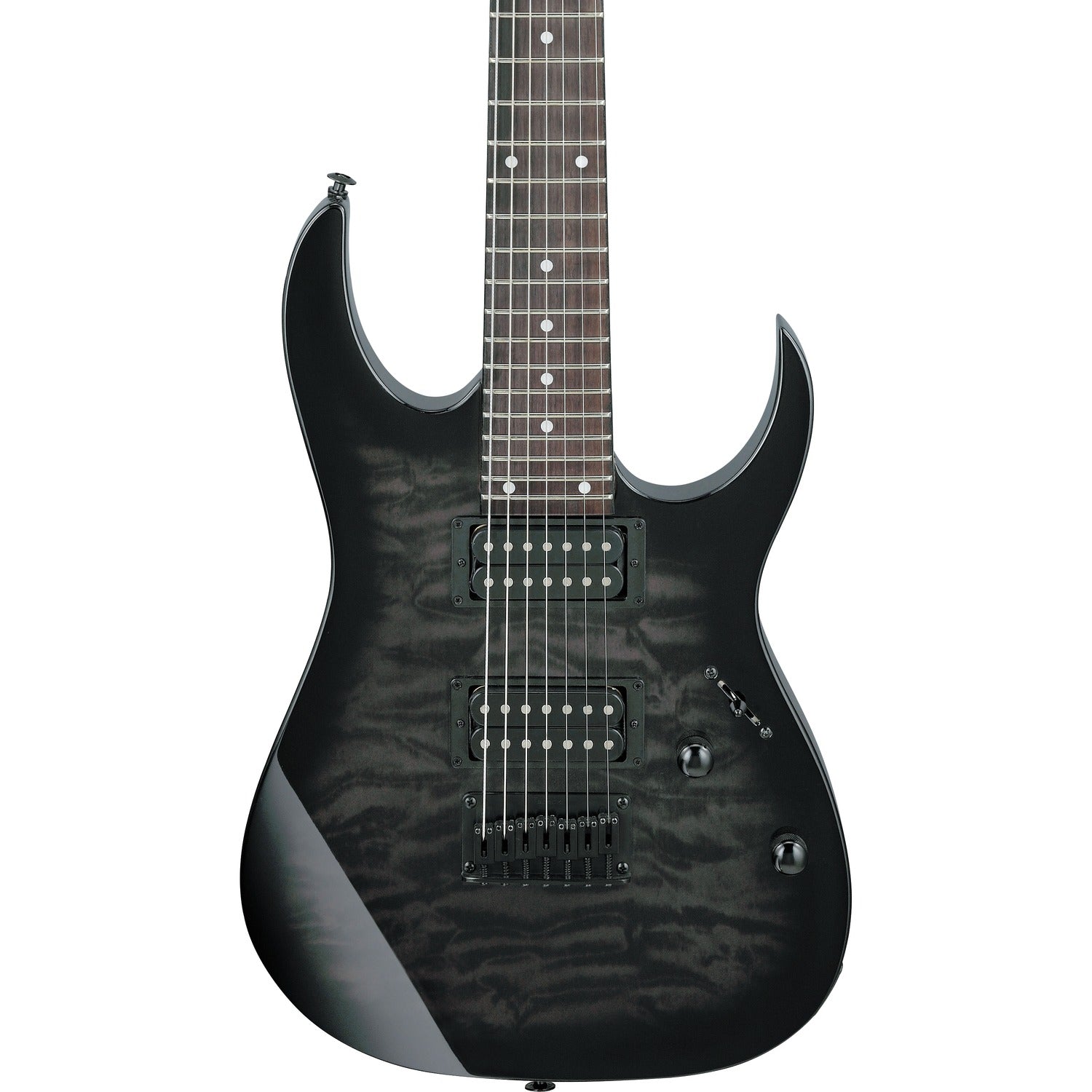 Ibanez GRG7221QA RG Series 7-String Electric Guitar - Transparent Black Sunburst Overview : The RG is the most recognizable and distinctive guitar in the Ibanez line. Three decades of metal have forged this high-performance machine, honing it for both speed and strength. Whether you favor a hardtail (fixed) bridge or our industry-leading locking tremolo system, the RG is a precision instrument.