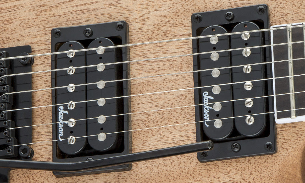A pair of Jackson high-output humbucking pickups with ceramic magnets cranks out clear tone with plenty of girth, and can be shaped with a three-way toggle switch and single volume and tone controls. This model also features all-black hardware including a synchronized fulcrum tremolo bridge, standard strap buttons and die-cast tuners.