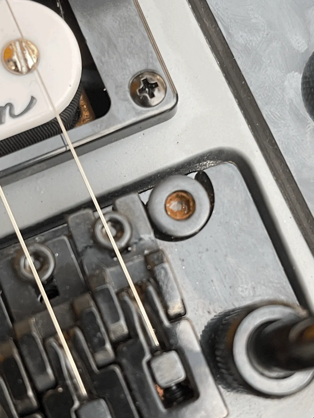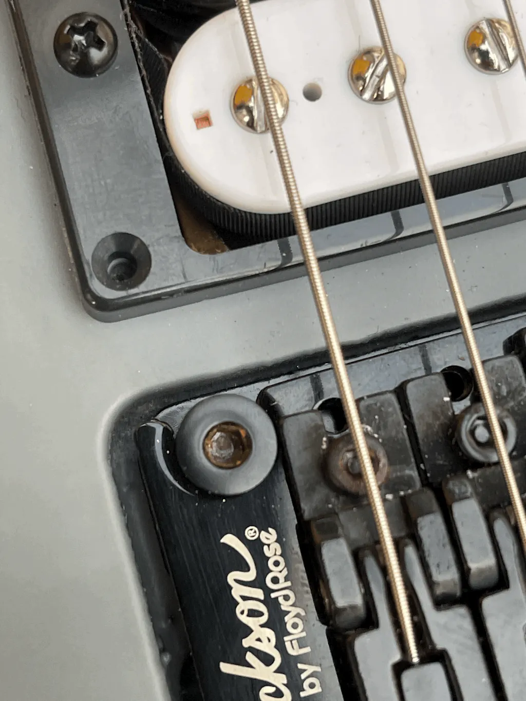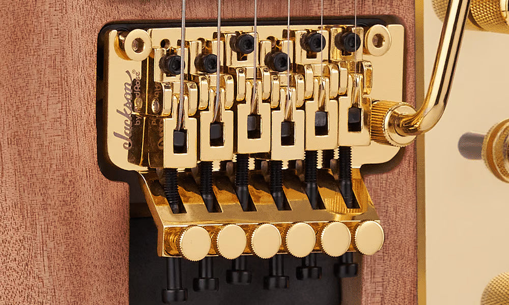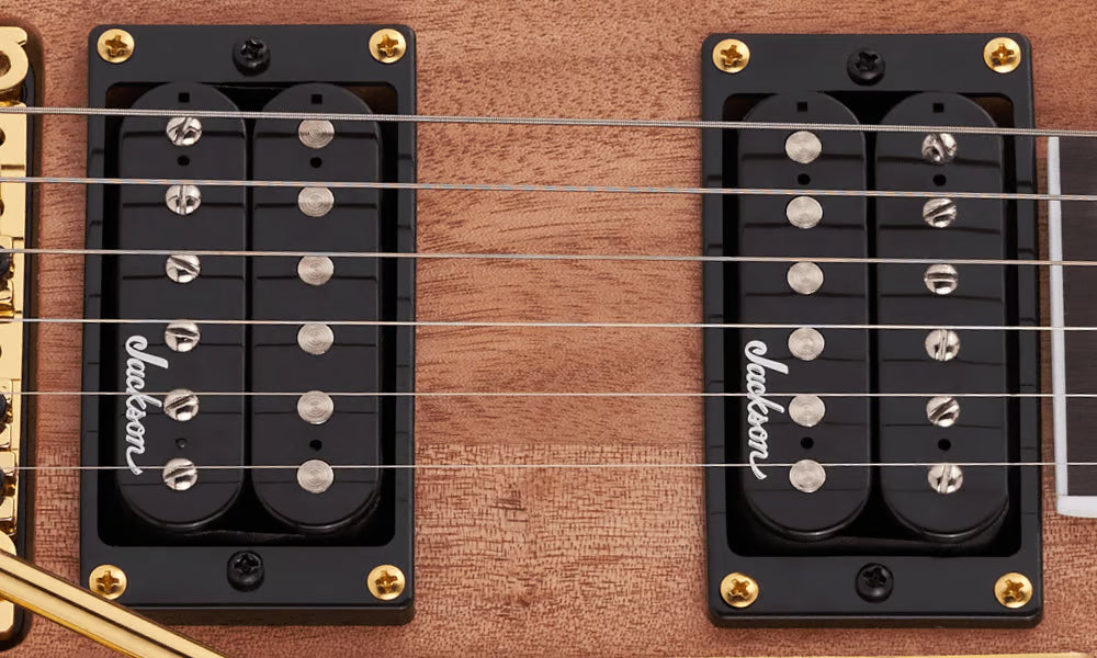 Other features include dual Jackson high-output humbucking pickups with ceramic magnets, single volume and tone controls, three-way toggle switch, a Jackson-branded Floyd Rose double-locking tremolo bridge and sealed die-cast tuners.