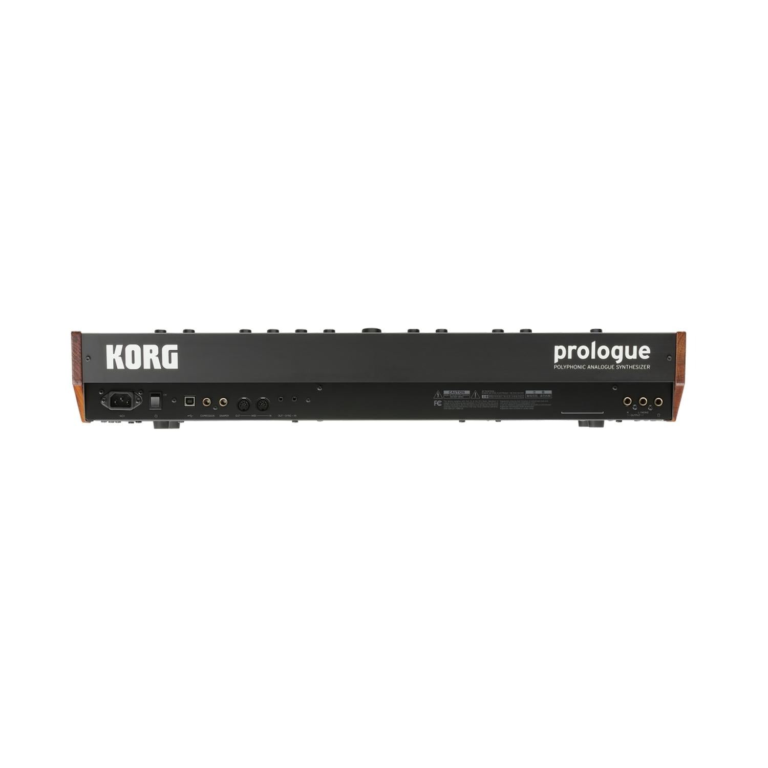 Tempo and note range can be changed Program Sort : 8 (PROG NUM, CATEGORY, ALPHABETICAL, LIKE, FREQUENT, ENVELOPE, RANDOM, LIVE SET) Main Synth Parameters VCO1 : WAVE (SAW, TRIANGLE, SQUARE), OCTAVE, PITCH, SHAPE VCO2 : WAVE (SAW, TRIANGLE, SQUARE), OCTAVE, PITCH, SHAPE MODULATION : PITCH EG (ALL, VCO1+2, VCO2), PITCN EG INT, SYNC, RING, CROSS MOD DEPTH MULTI ENGINE : NOISE/VPM/USER, OCTAVE, TYPE, SHAPE MIXER : VCO1, VCO2, MULTI VCF : CUTOFF, RESONANCE, EG INT, DRIVE, LOW CUT, KEYTRACK AMP EG : ATTACK, DECAY, SUSTAIN, RELEASE EG : ATTACK, DECAY, SUSTAIN, RELEASE LFO : WAVE (SAW, TRIANGLE, SQUARE), MODE (FAST, SLOW, BPM), RATE, INT, TARGET (PITCH, SHAPE, CUTOFF) Main Effect Parameters MOD EFFECTS : OFF/ON/SELECT (CHORUS, ENSEMBLE, PHASER, FLANGER, USER), SPEED, DEPTH DELAY/REVERB : OFF/DELAY/REVERB, TIME, DEPTH L.F COMP (prologue-16 only) : OFF/ON, GAIN MULTI ENGINE Noise Generator : 4 types VPM oscillator : 16 types User oscillator : 16 slots MOD EFFECTS CHORUS : 8 types ENSEMBLE : 3 types PHASER : 8 types FLANGER : 8 types USER : 16 slots DELAY/REVERB DELAY : 8 types REVERB : 8 types Controls : Wheels : Modulation wheel that can modify different parameters for each program, pitch wheel Knobs : PORTAMENTO knob, VOICE SPREAD knob (only on prologue-16) Display Main : Real-time OLED oscilloscope provides visual feedback of parameter changes MULTI ENGINE section : 7 segments x 6 digit LED display Input/Output connectors Headphone jack (Stereo phone jack) OUTPUT L/MONO, R jacks (monaural phone jack unbalanced) SYNC IN jack (3.5 mm [1/8"] mini jack, maximum input level 20 V) SYNC\n SYNC OUT jack (3.5 mm [1/8"] mini jack, output level 5 V) MIDI IN jack MIDI OUT jack USB B jack EXPRESSION jack DAMPER jack (half damper is not supported) Power Supply : AC Power Supply terminal Power Consumption prologue-16 : 38 W prologue-8 : 23 W Dimensions (W x D x H) prologue-16 : 874 mm x 348 mm x 118 mm/34.41" x 13.70" x 4.65" \n prologue-8 : 709 mm x 348 mm x 118 mm/27.91" x 13.70" x 4.65" Weight prologue-16 : 9.1 kg/20.06 lbs.