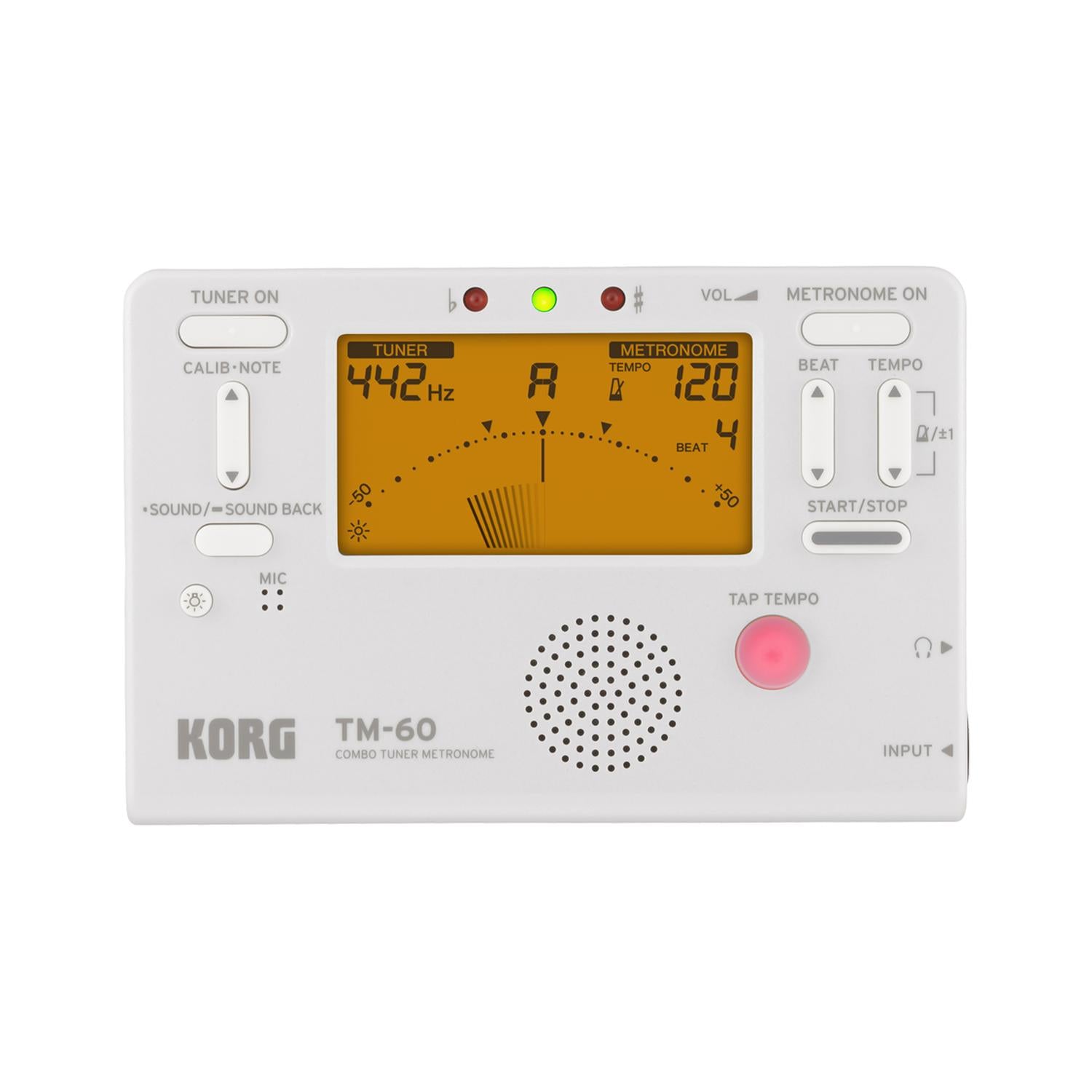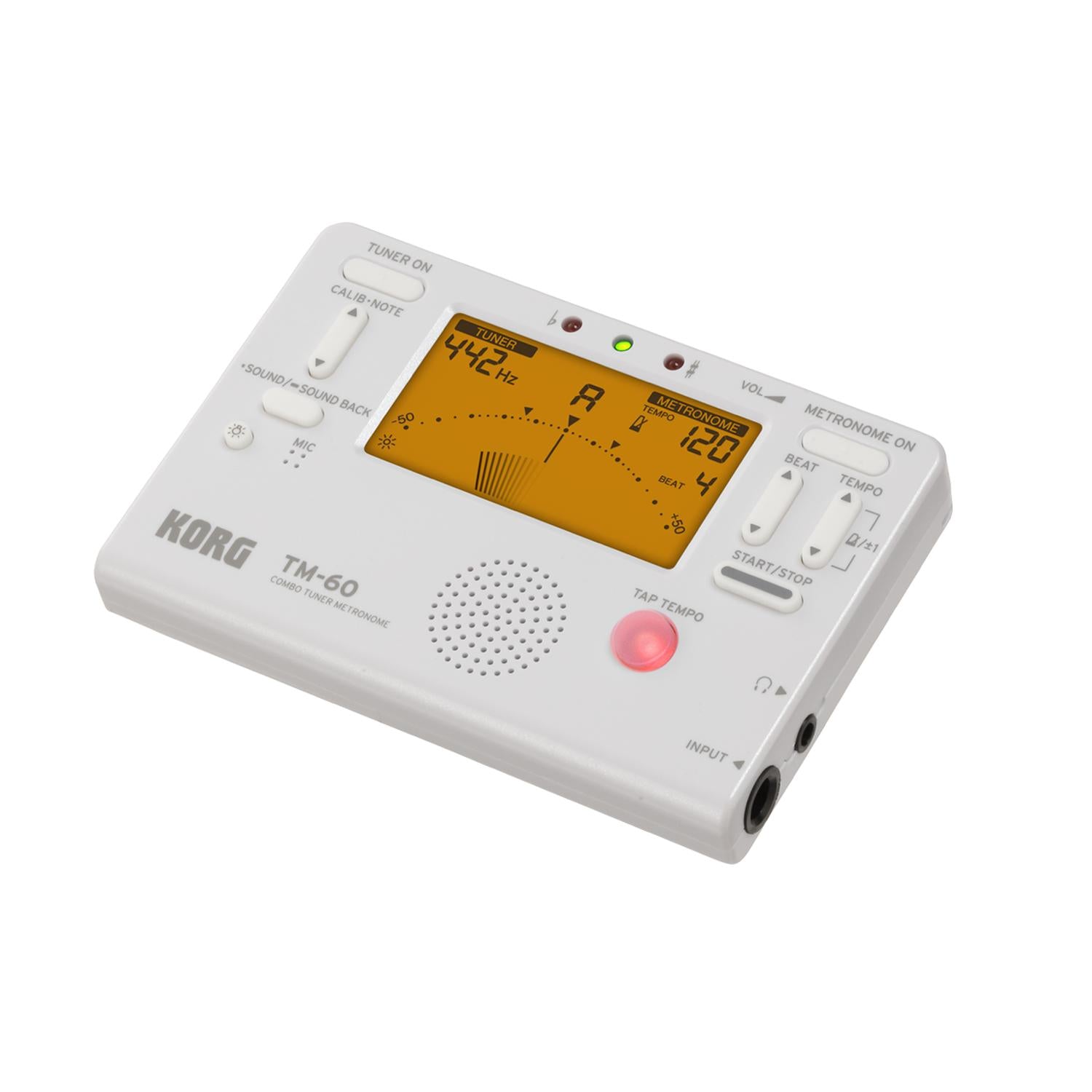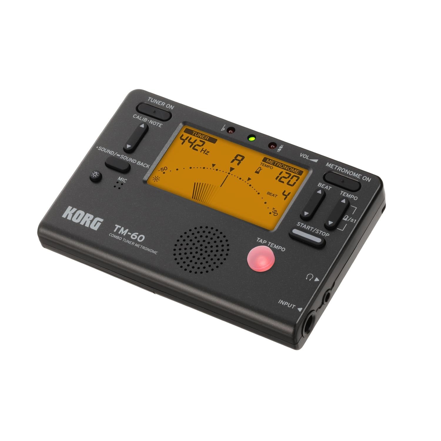 The best-selling KORG TM series, which lets you use a tuner and metronome simultaneously, has been revamped The TM-60 is the newest model and features a larger display that can show the tuner and metronome simultaneously.