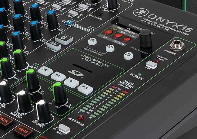 Take multitracking and live performance to the next level. The Mackie Onyx16 is a premium 16-channel USB mixer optimized for professional recording, production and live sound. Experience impeccable sound quality, a flexible FX engine and seamless workflow for the studio or the stage.