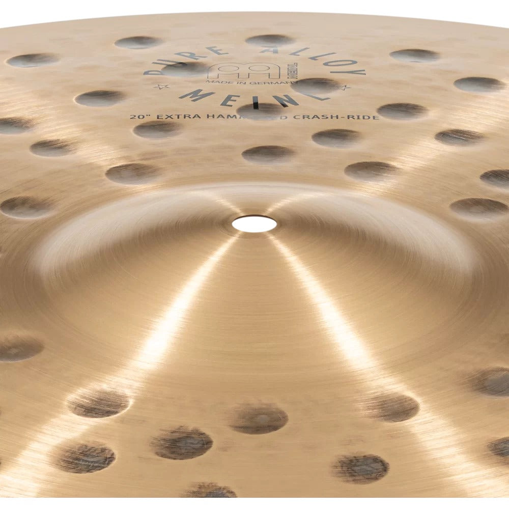 Meinl Pure Alloy Extra Hammered Crash Ride Cymbals Overview: Effortless touch and clean sound. This is Meinl Pure Alloy. A timeless voice formed with fully lathed surfaces allows them to be expressive in virtually any style. Their refined nature has two sides: polished definition met by a velvety wash that encompasses a full tonal spectrum.