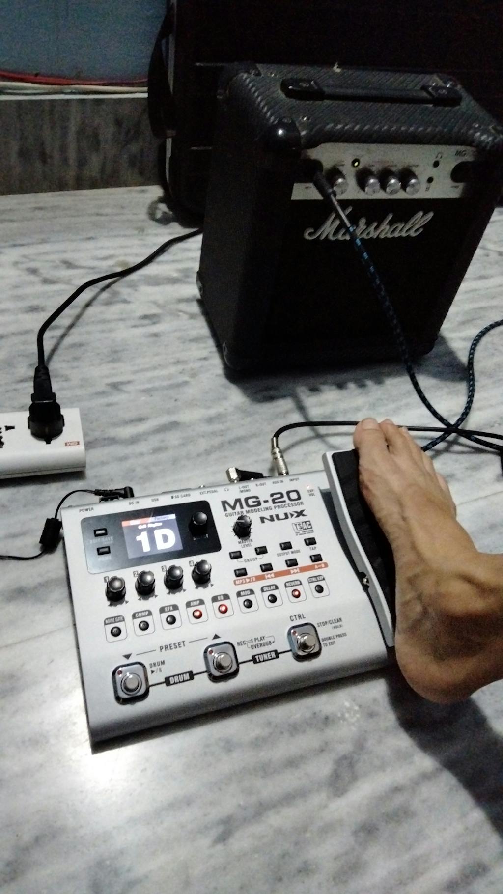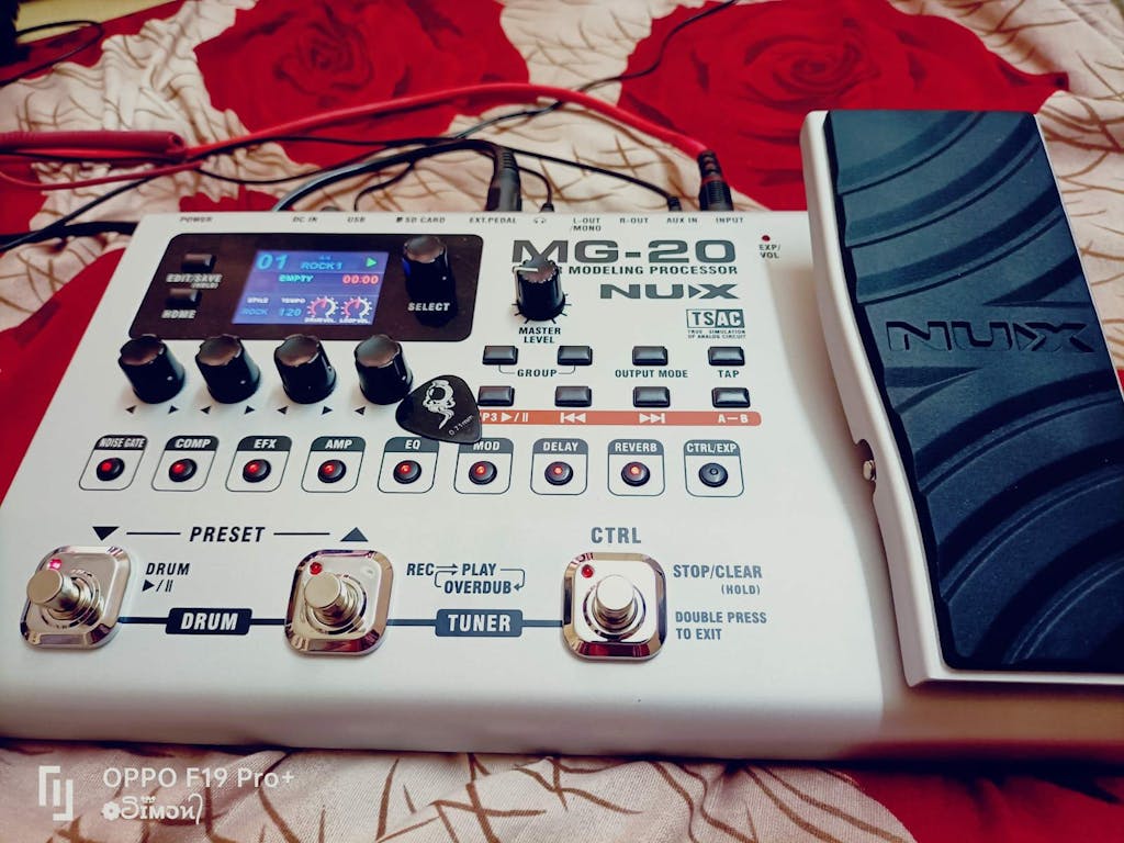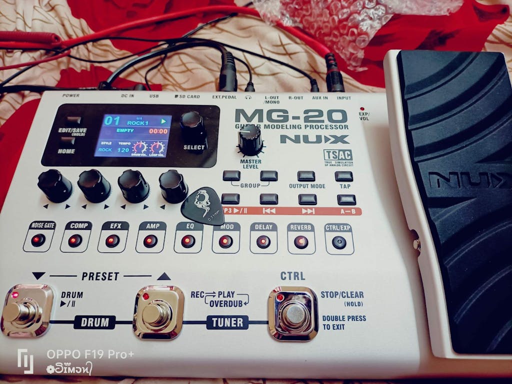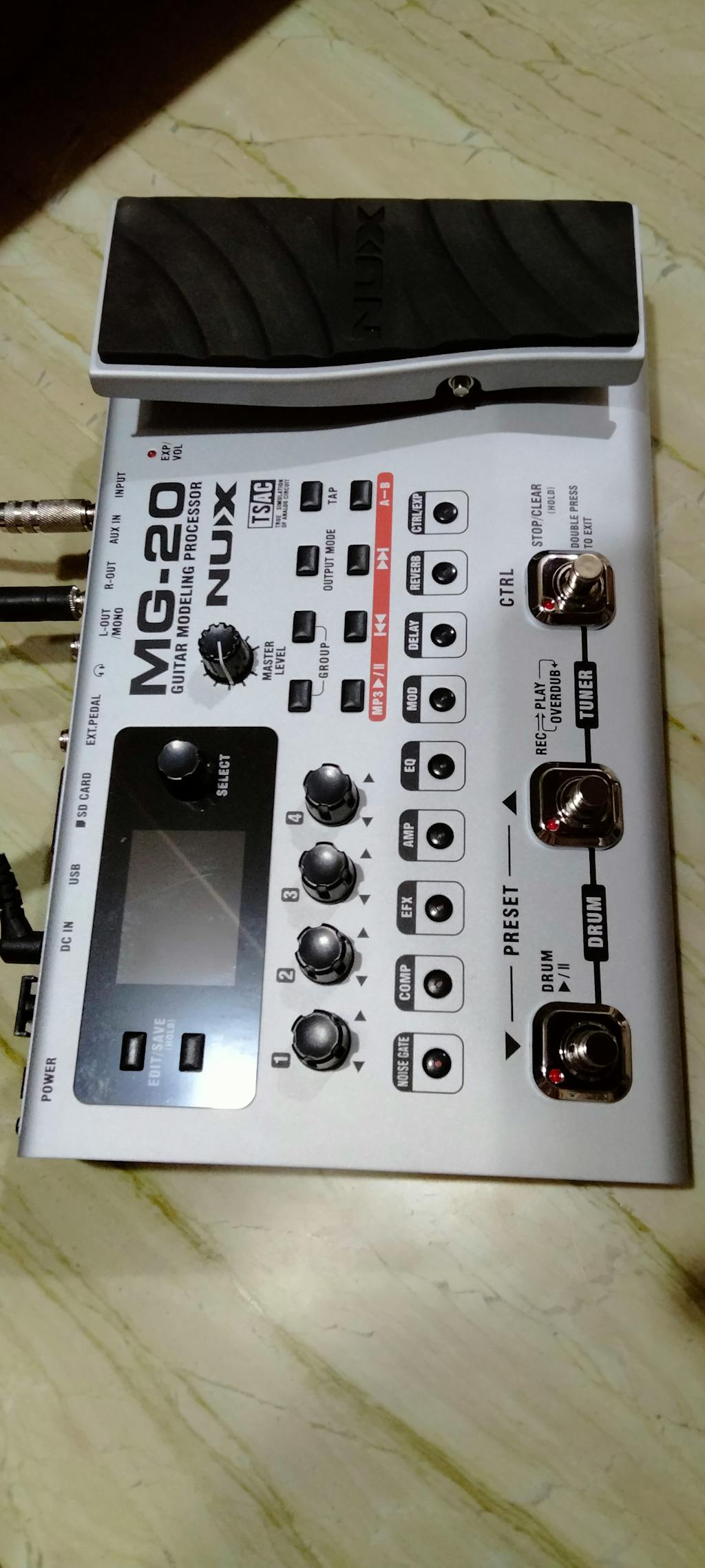 NUX MG-20 Guitar Modeling Processor Overview: MG-20 is the floor guitar processor with 32bit float point DSP equipped and True Simulation of Analog Circuits (TSAC) technology Up to 60 models, 60's looper, sample-based drum machine and MP3/WAV player, sophisticated user interface and big colorful LCD display, MG-20 is the pro solution for guitarist who wants to nice tone and function.