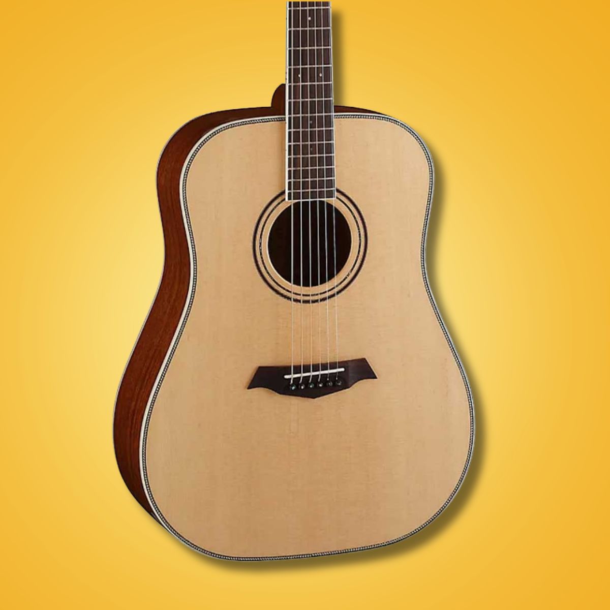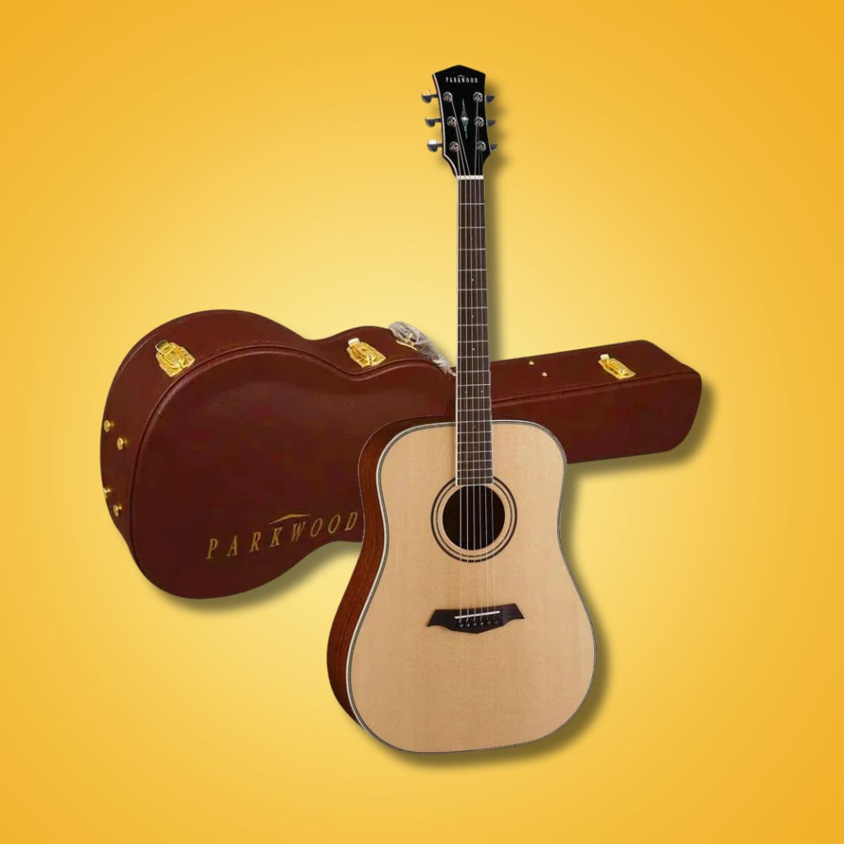 Parkwood P610 Dreadnought Acoustic Guitar with Case Overview: The P610 boasts most rich low-pitched tone out of all Parkwood guitar line-up. The hand-refined P610 by world-class craftsmen has a simple and modern look, reproducing a historical dreadnought body. Wrapping the body around with a vintage herringbone binding, the avalone-decorated rosette gives you the image of a neatly dressed gentleman.